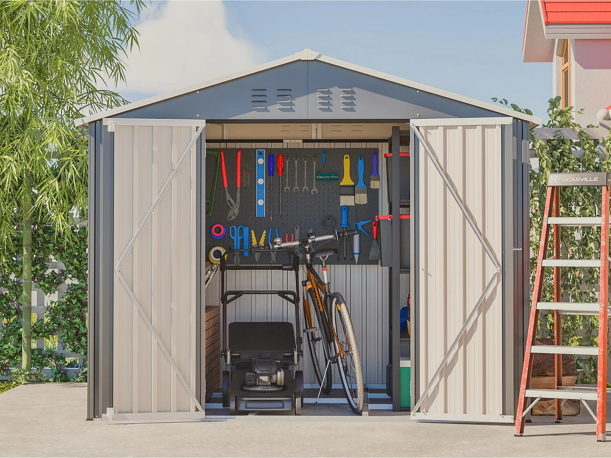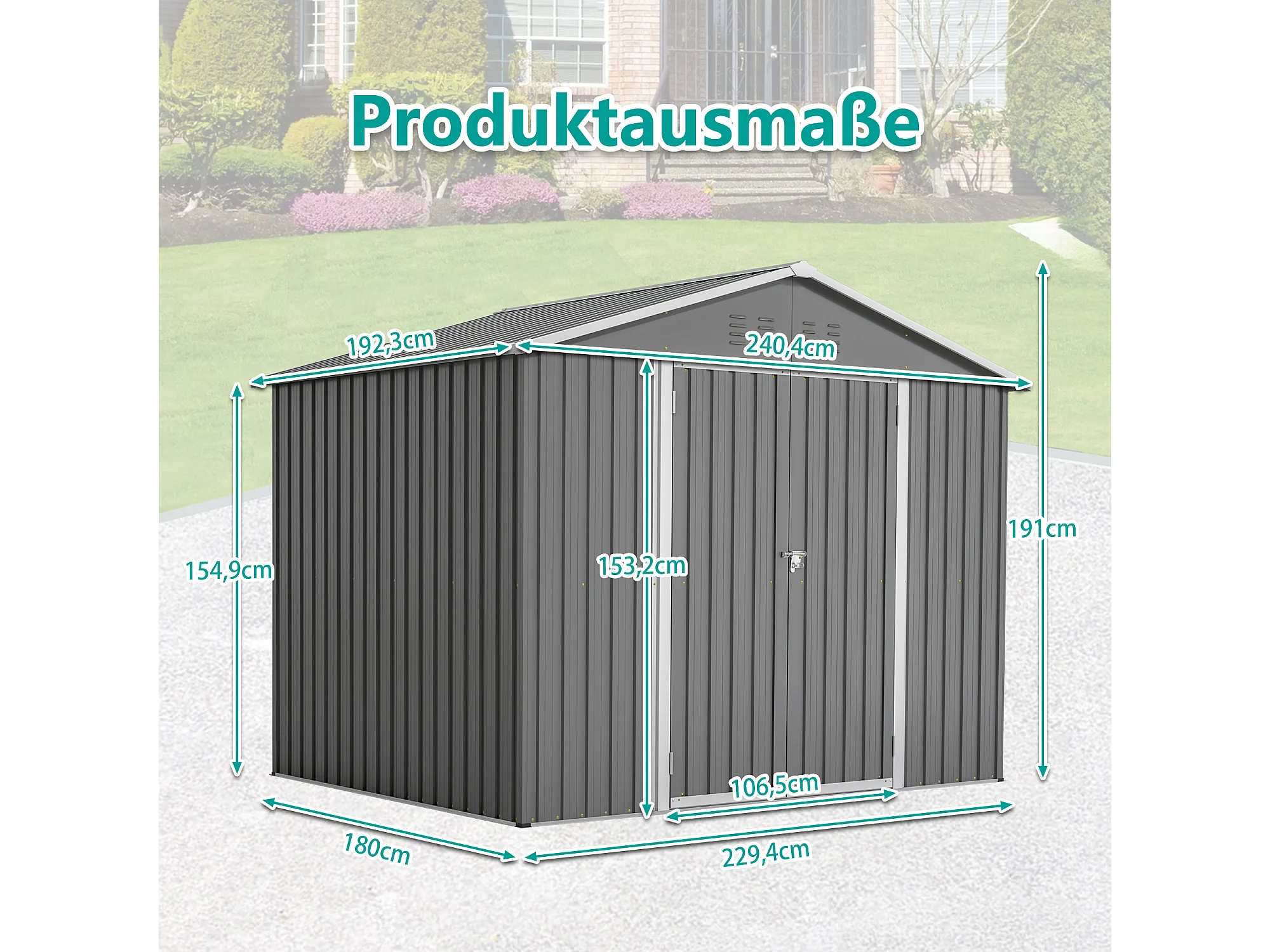 Abri de jardin métallique 240 x 180 cm – acier galvanisé, abri de rangement extérieur avec porte coulissante et ventilation