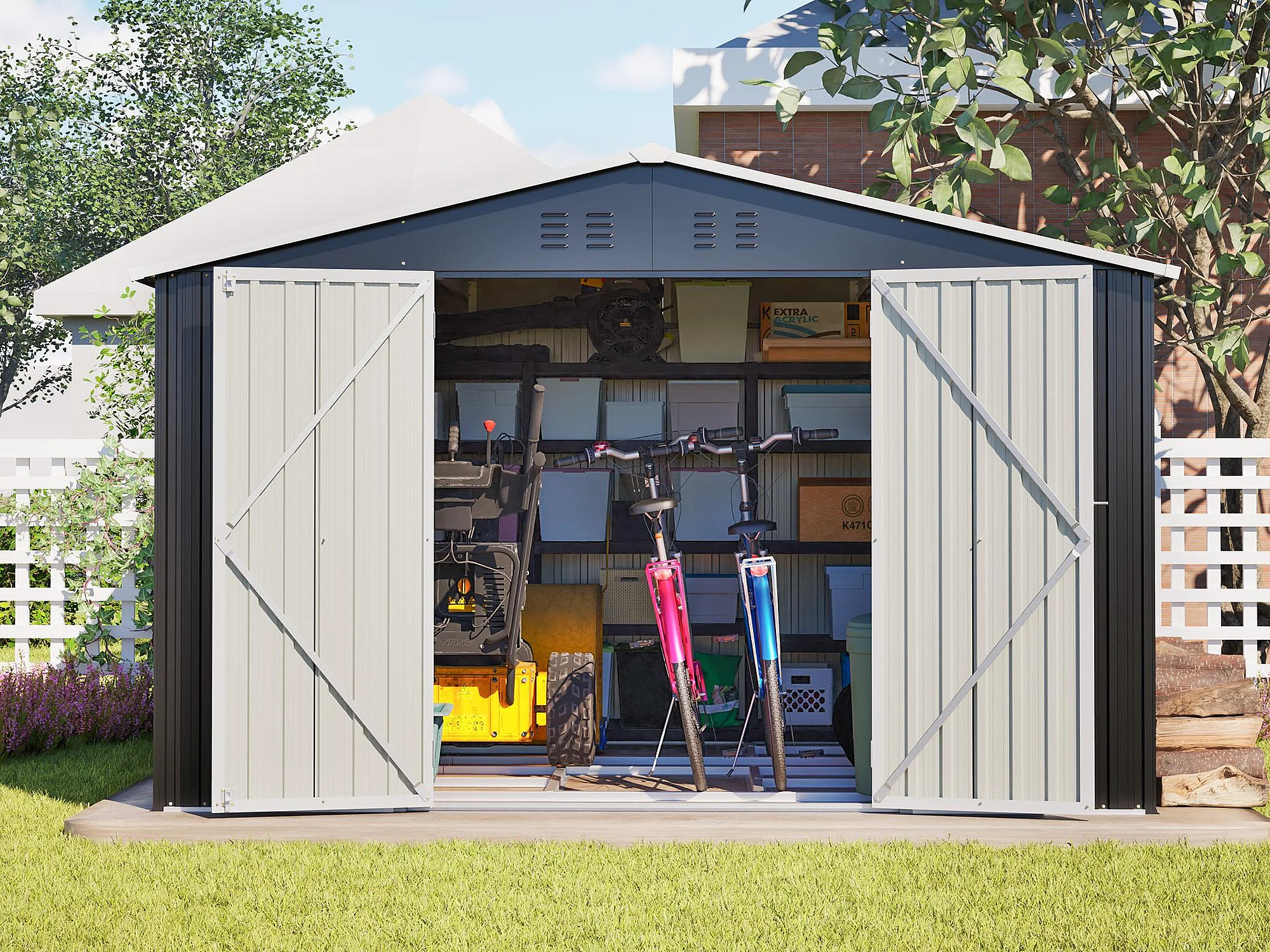 Abri de jardin métallique 240 x 300 cm – acier galvanisé, grand abri de rangement extérieur avec porte coulissante et ventilation