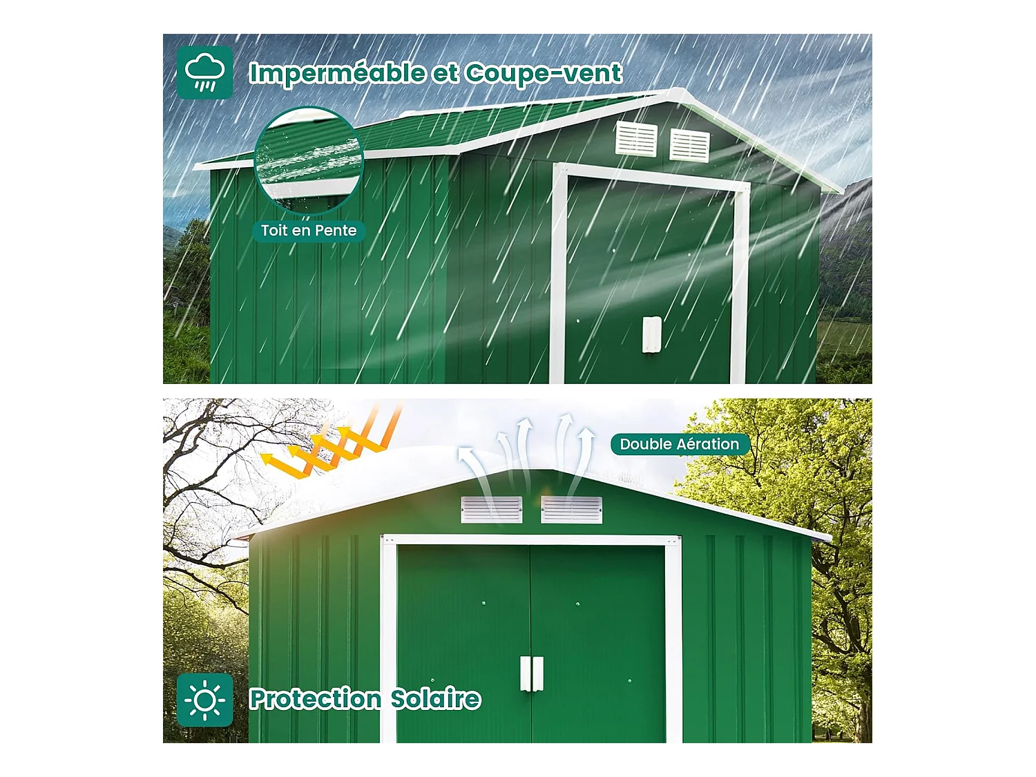 Abri de Jardin en Métal Cabane/Remise de Jardin Stockage Rangement de Vélo Outils 213 x 130 x 173 cm vert