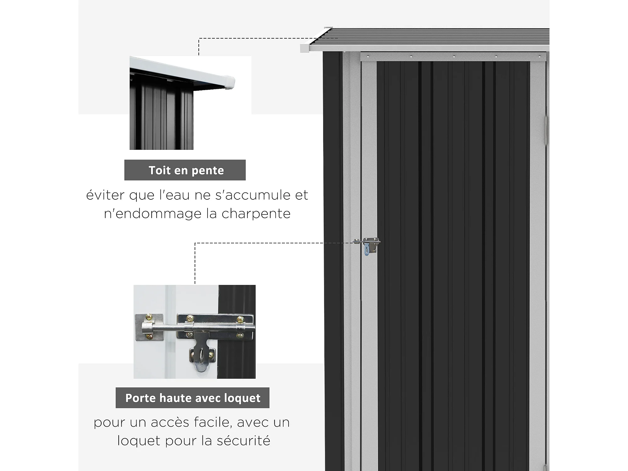 Abri de jardin - remise pour outils - cabanon porte verrouillable - dim. 142L x 84l x 189H cm - tôle d'acier anthracite blanc