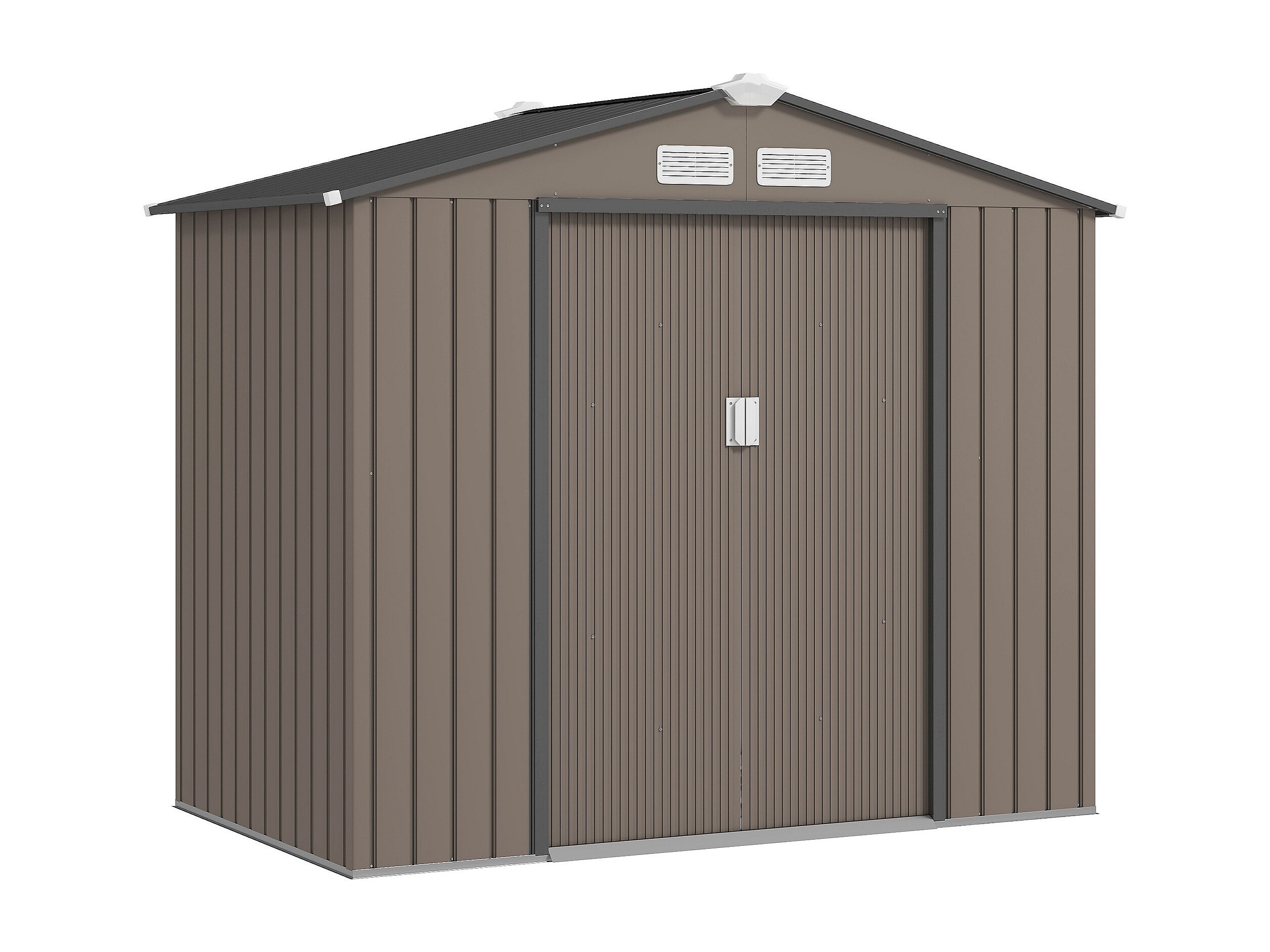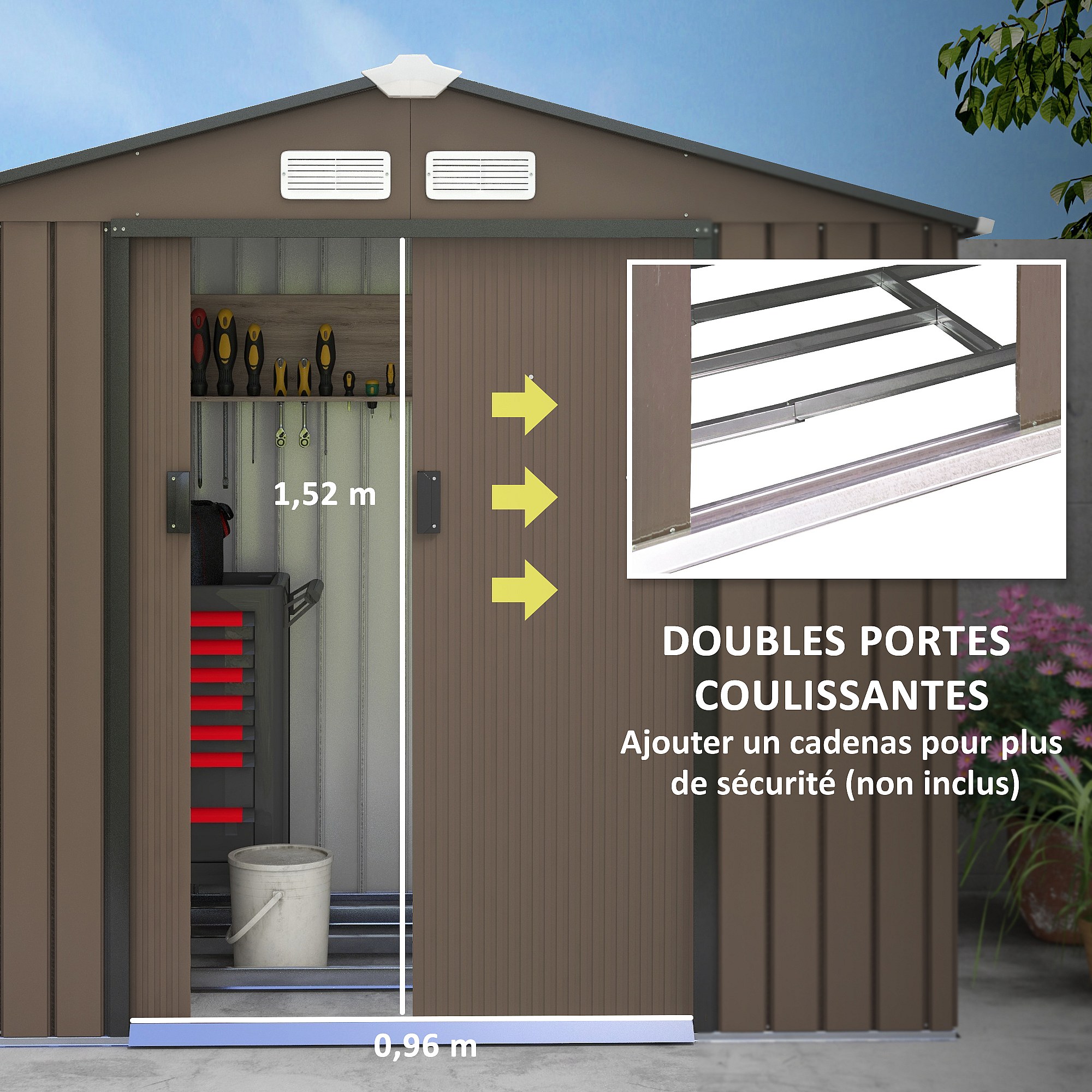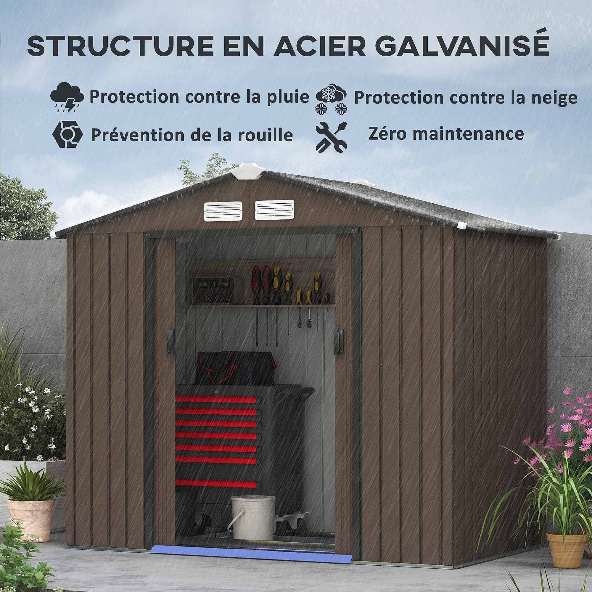 Abri de jardin - remise pour outils - cabanon porte verrouillable - dim. 213L x 130l x 185H cm - tôle d'acier chocolat