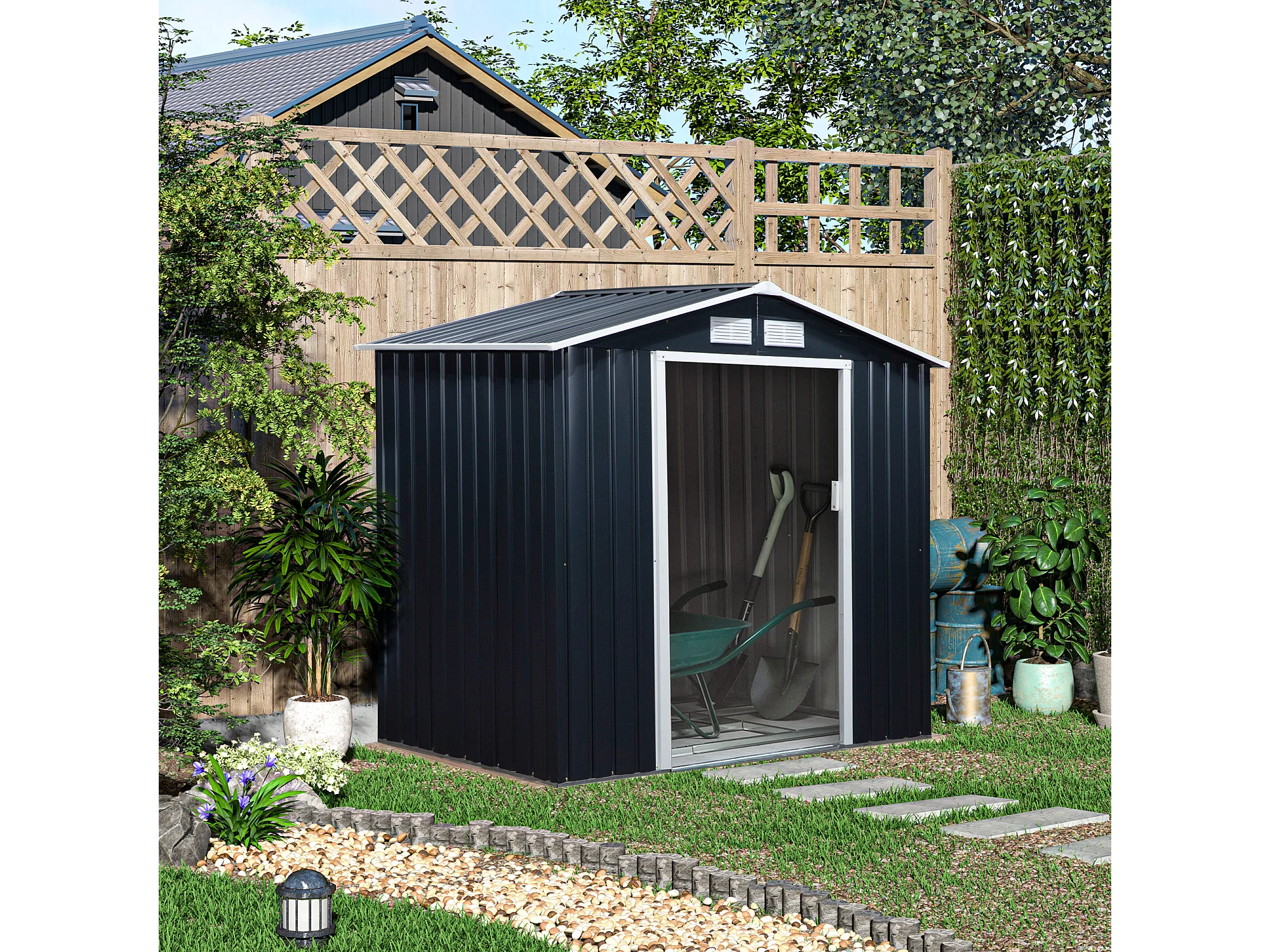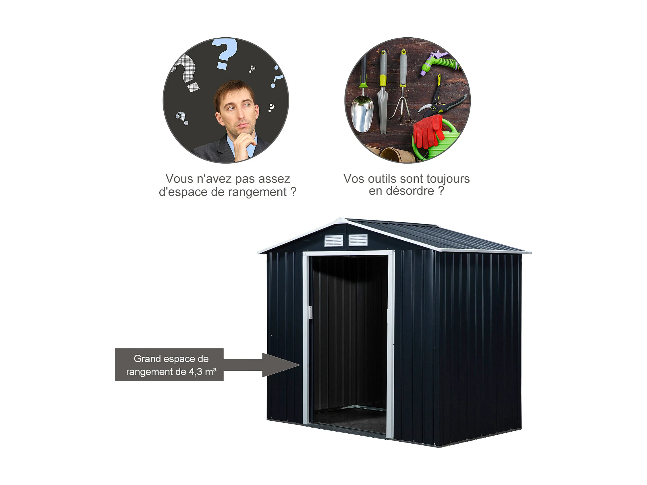 Abri de jardin - remise pour outils - cabanon porte verrouillable - dim. 213L x 130l x 185H cm - tôle d'acier gris