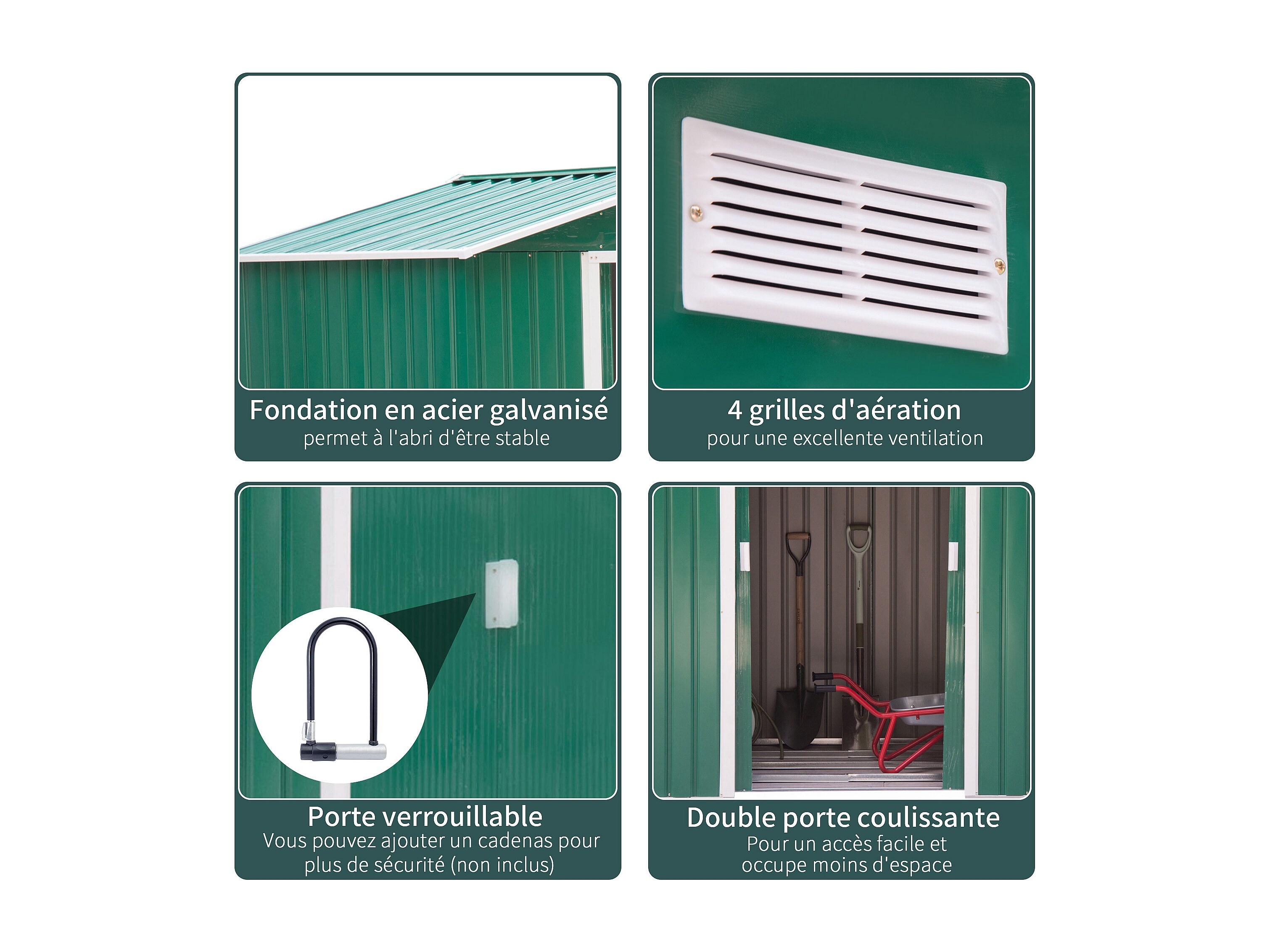 Abri de jardin - remise pour outils - cabanon porte verrouillable - dim. 213L x 130l x 185H cm - tôle d'acier vert
