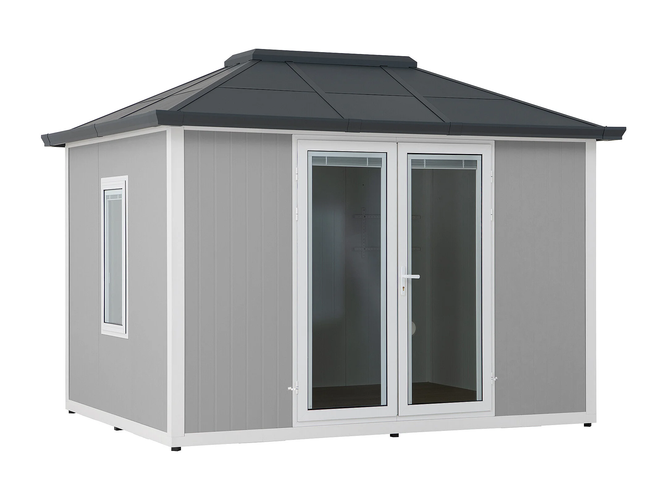 Abri de jardin RIGA avec plancher, fenêtres et portes verrouillables.