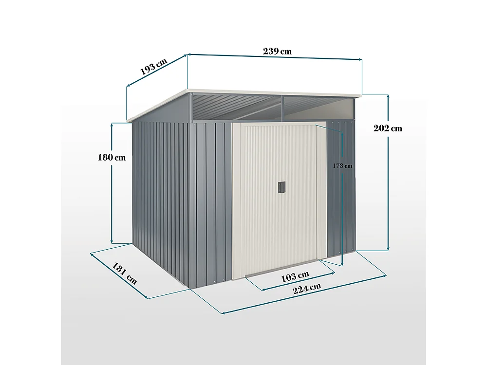 Abri de jardin Wasabi Stark 4.6 m2 - Garantie 10 ans - 194x239x203cm. Remise métal