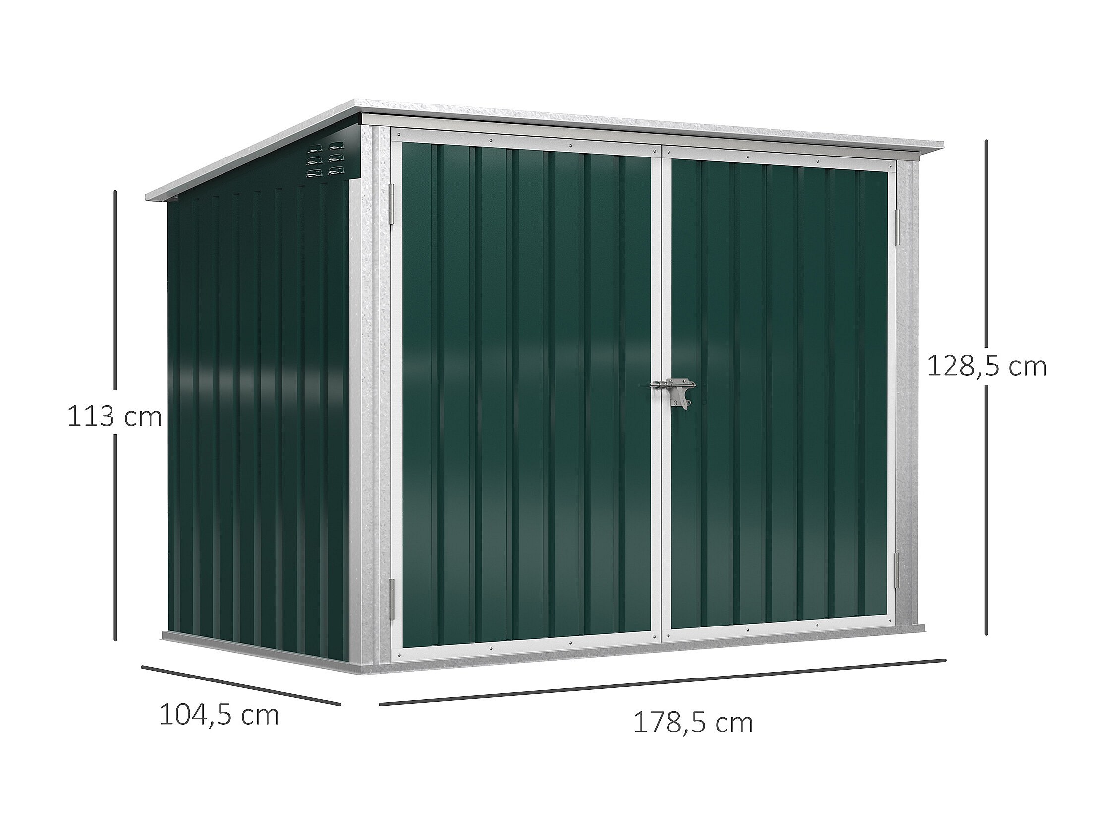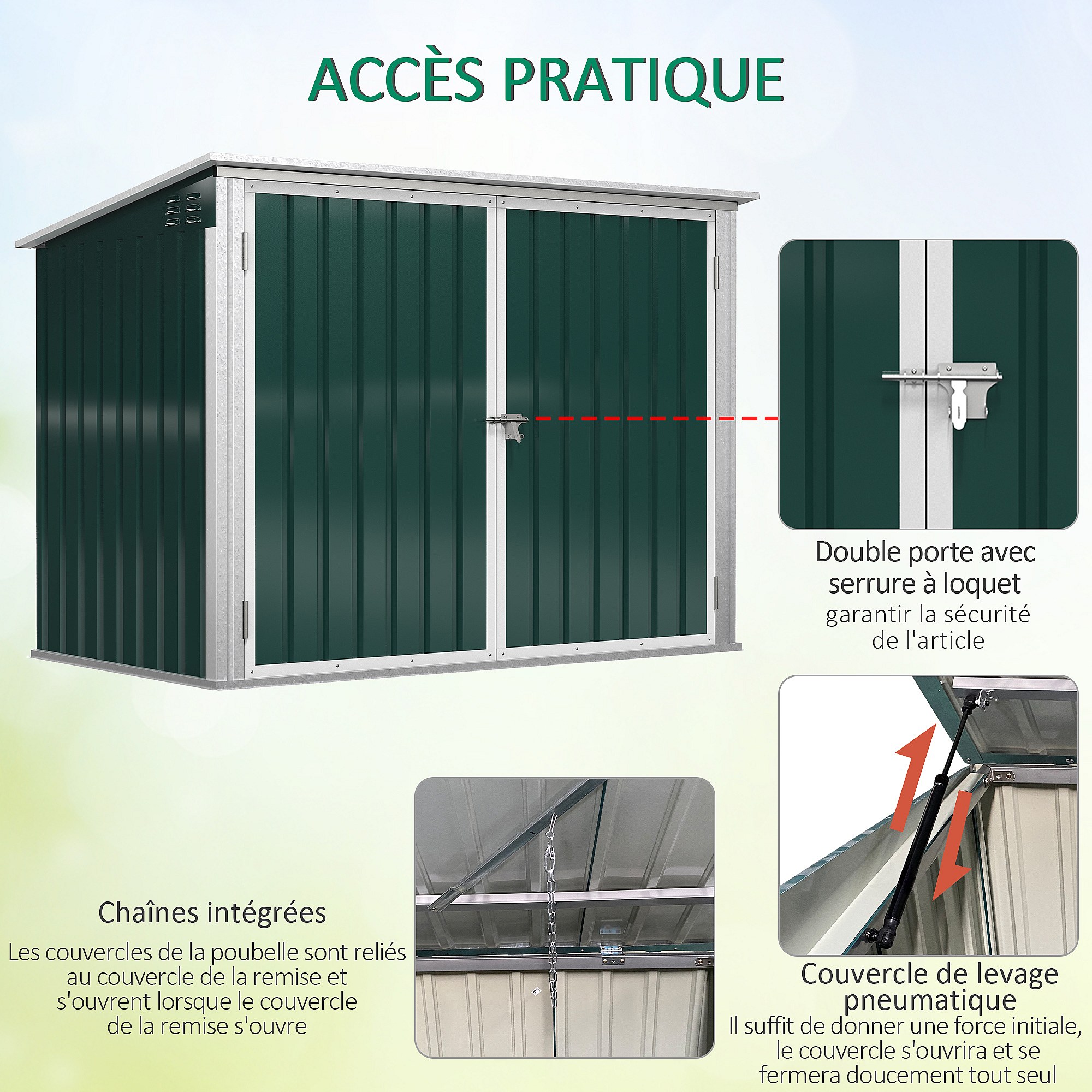 Abri de poubelle jardin - cache poubelle - 2 portes verrouillables, toit ouvrant - tôle d'acier blanc vert