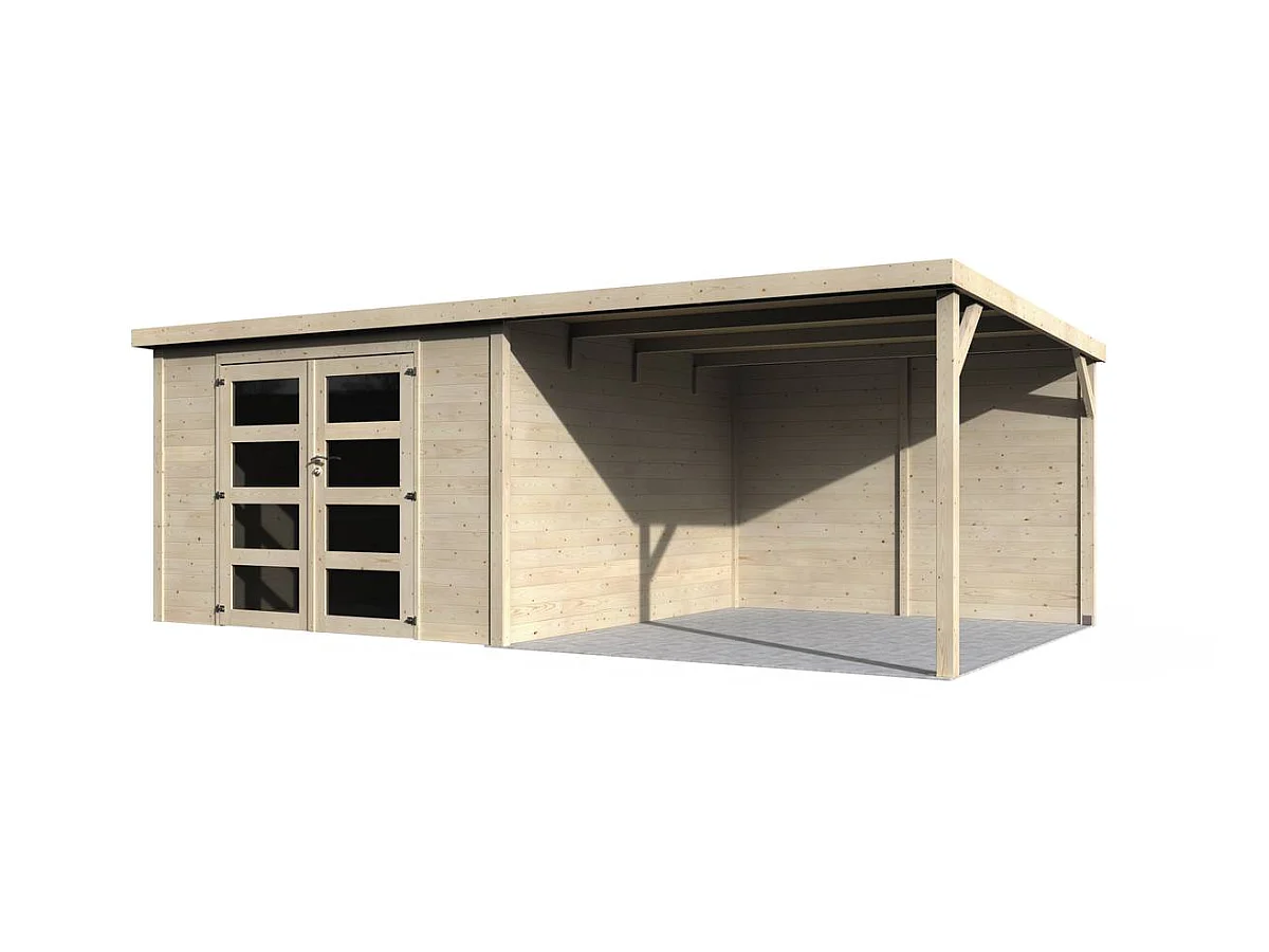 Abri jardin bois "Delices" avec extension - 17.44 m² - 5.71 x 3.05 x 2.02 m - 28 mm