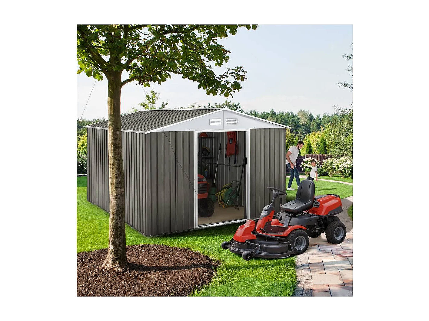 Abri jardin métal "Dallas" - 8,84 m² - Taupe