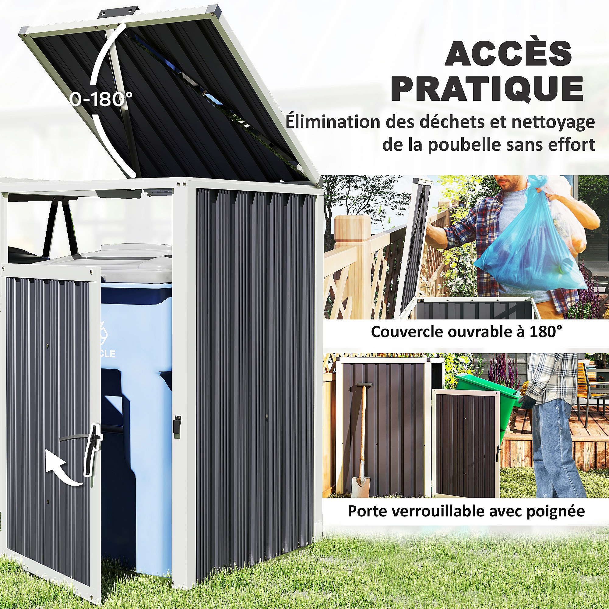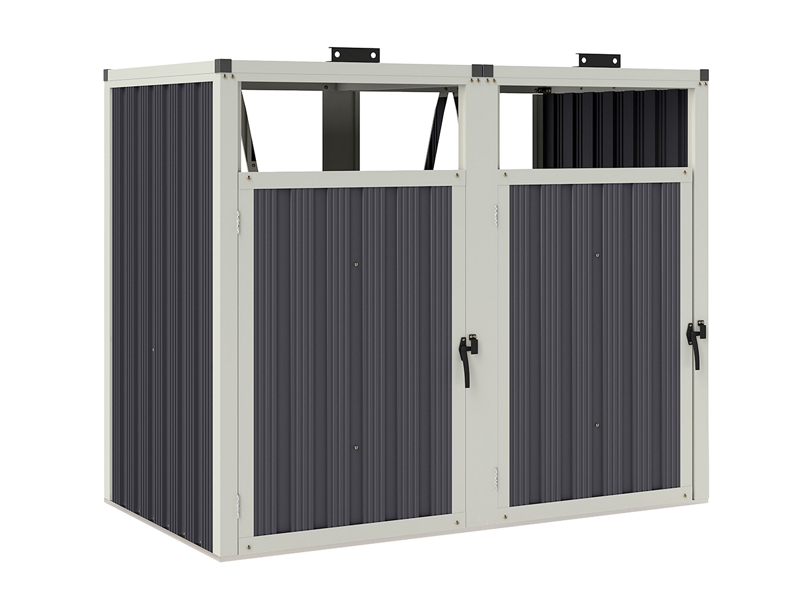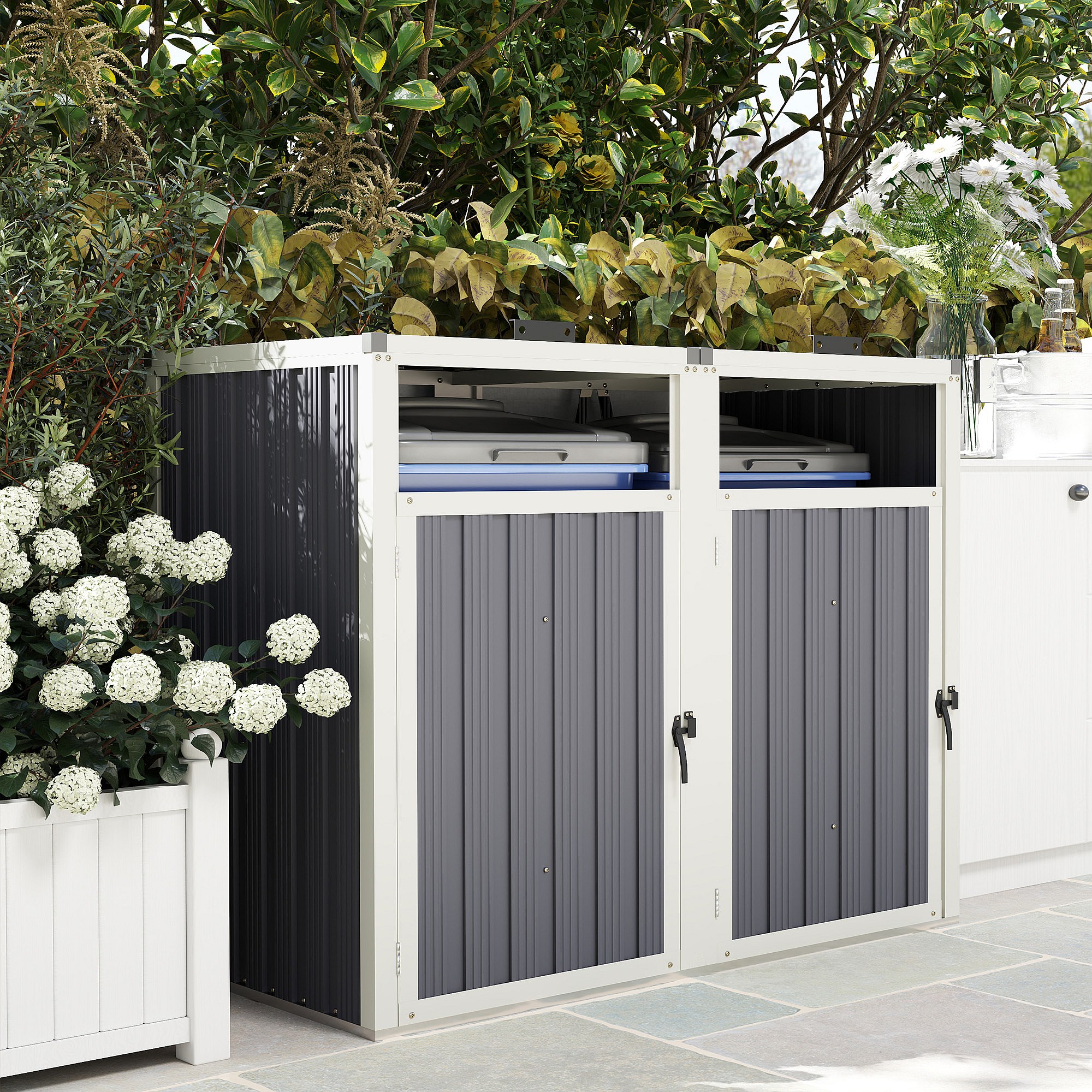 Outsunny Abri pour 2 poubelles 240L, cache poubelle extérieur, portes avec poignées, couvercles relevables à 180°, acier galvanisé, 146 x 81 x 122 cm, gris foncé