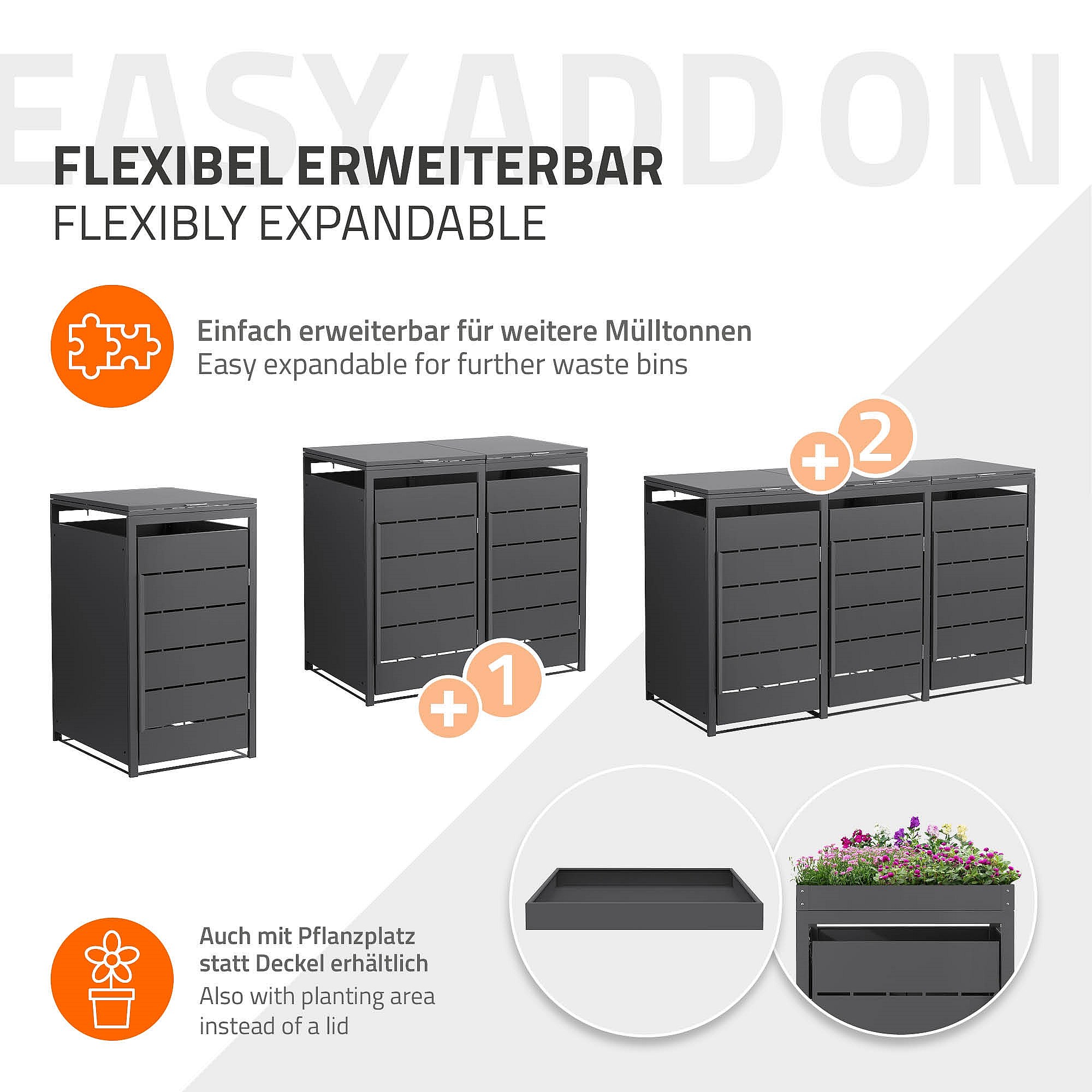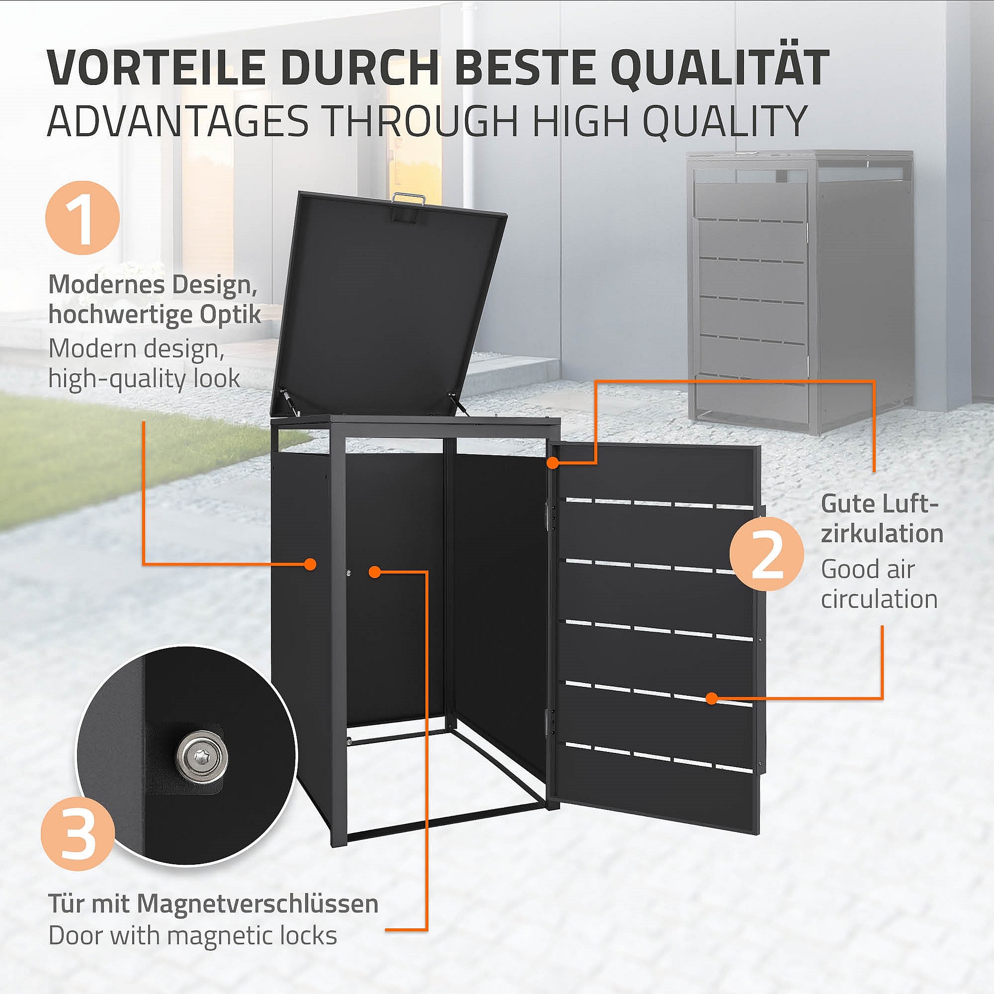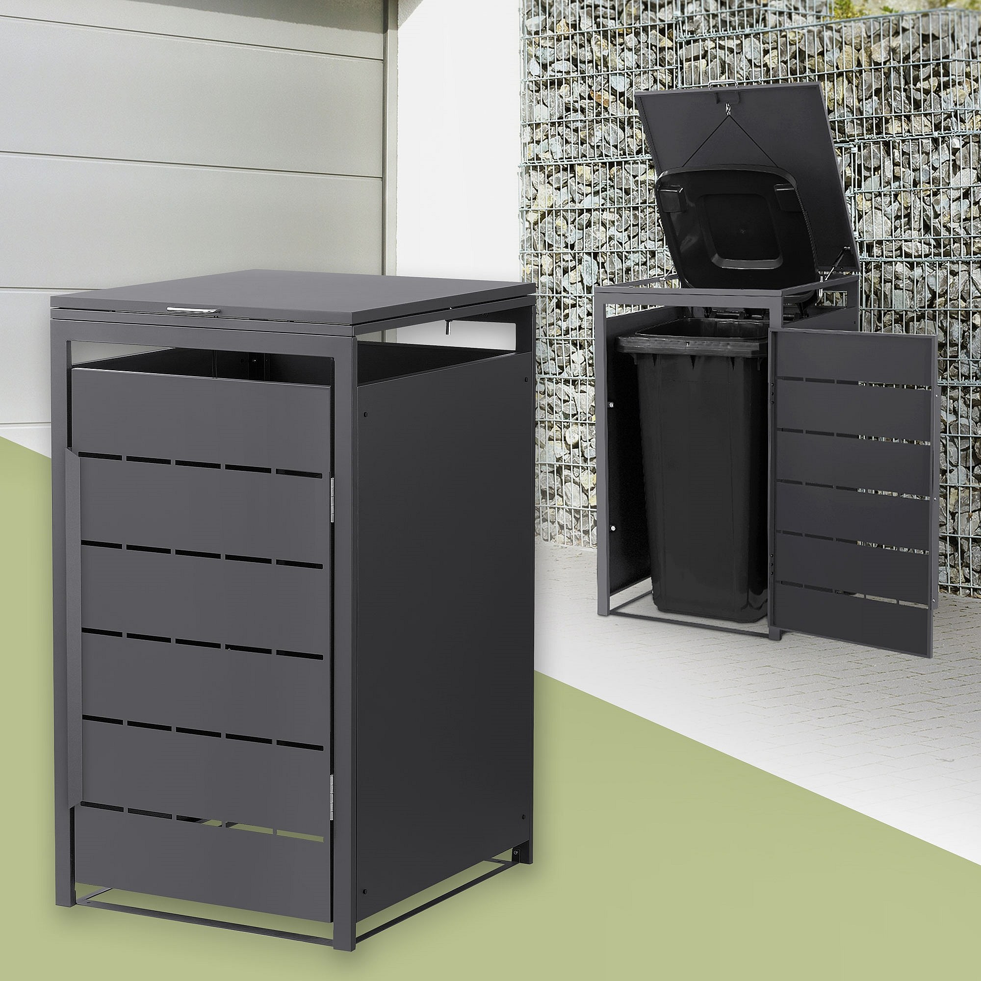Abri pour 1 poubelle 68x80x120 cm 240L anthracite en acier couvercle rabattable et porte clôture habillage conteneur ordures résistant aux intempéries
