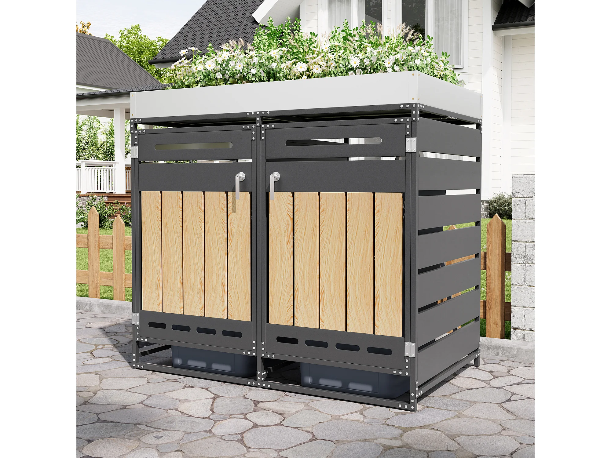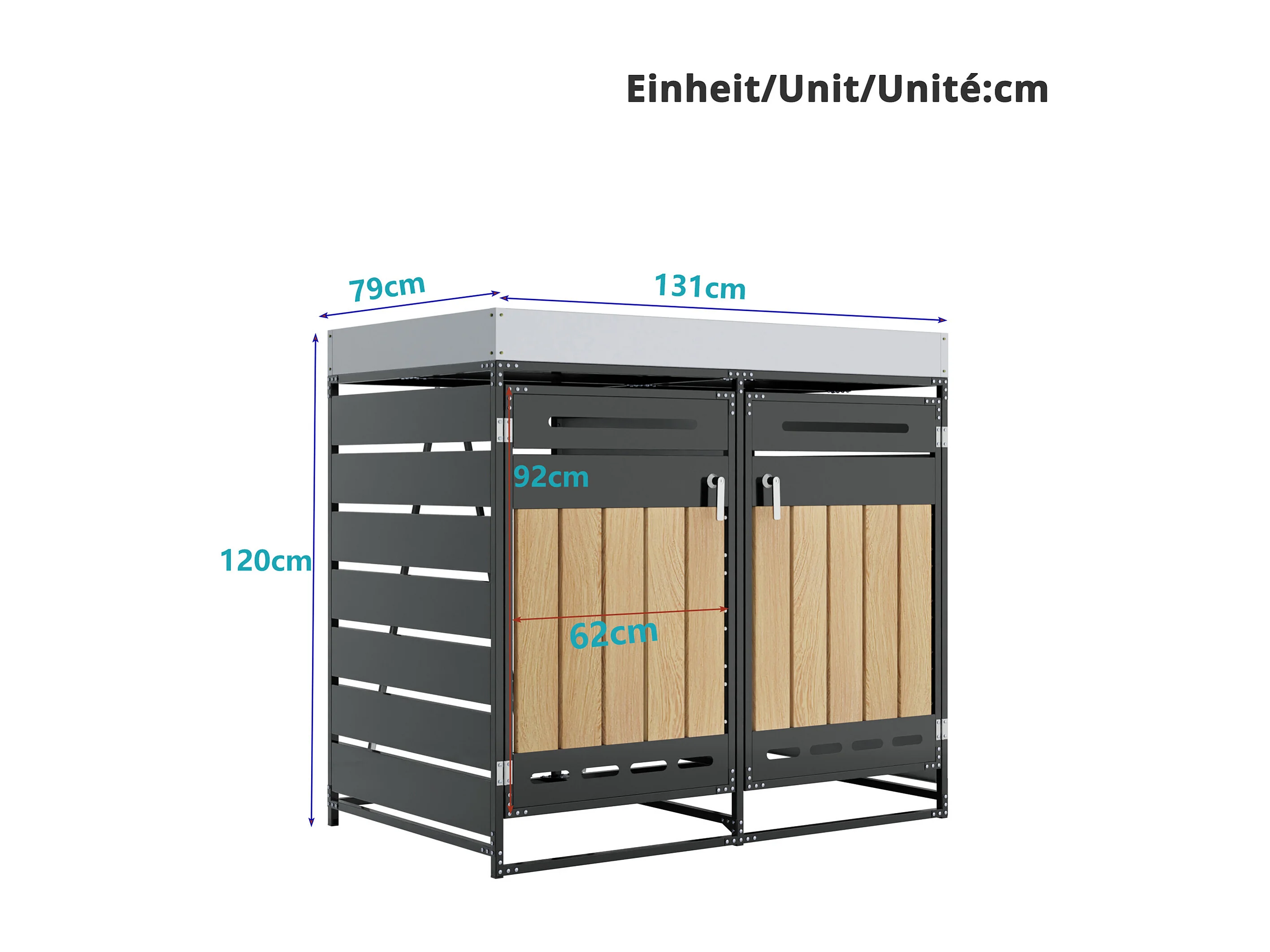 Abri pour 2 poubelles de jardin - 131 x 79 x 120 cm - avec bac à fleurs + serrure + 2 portes - métal - noir