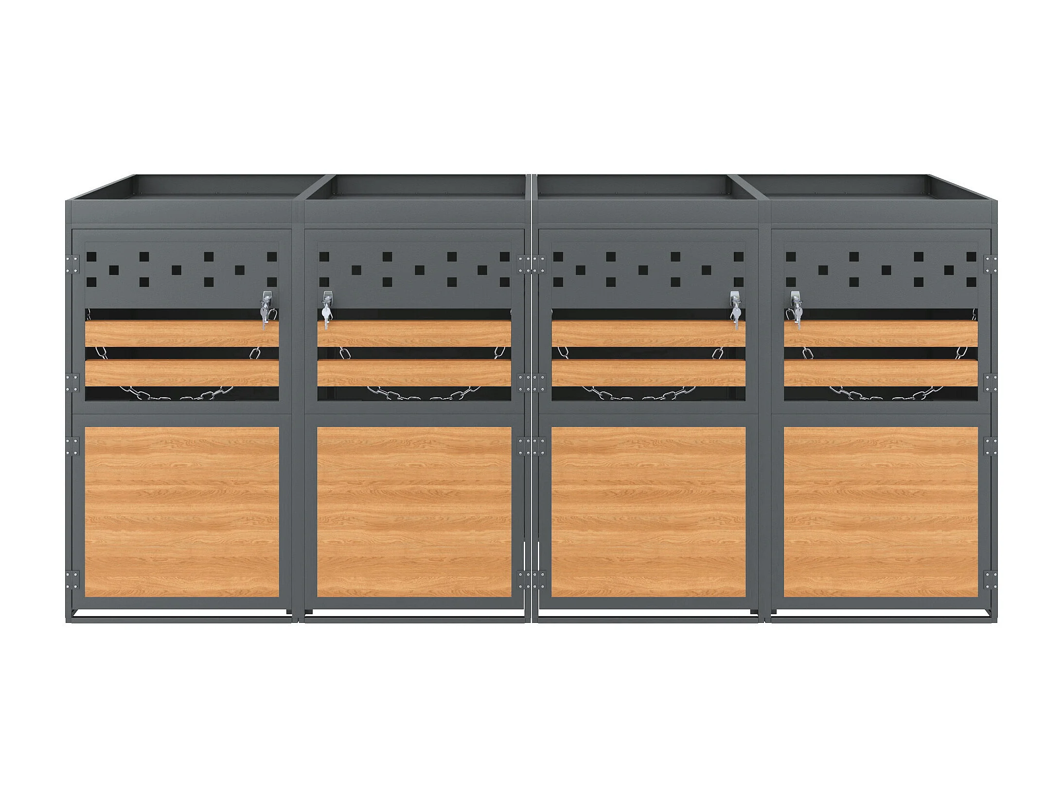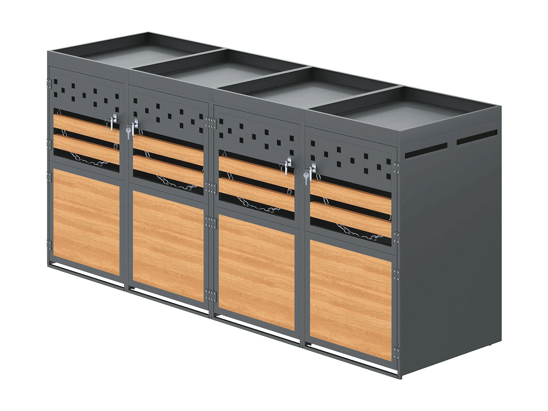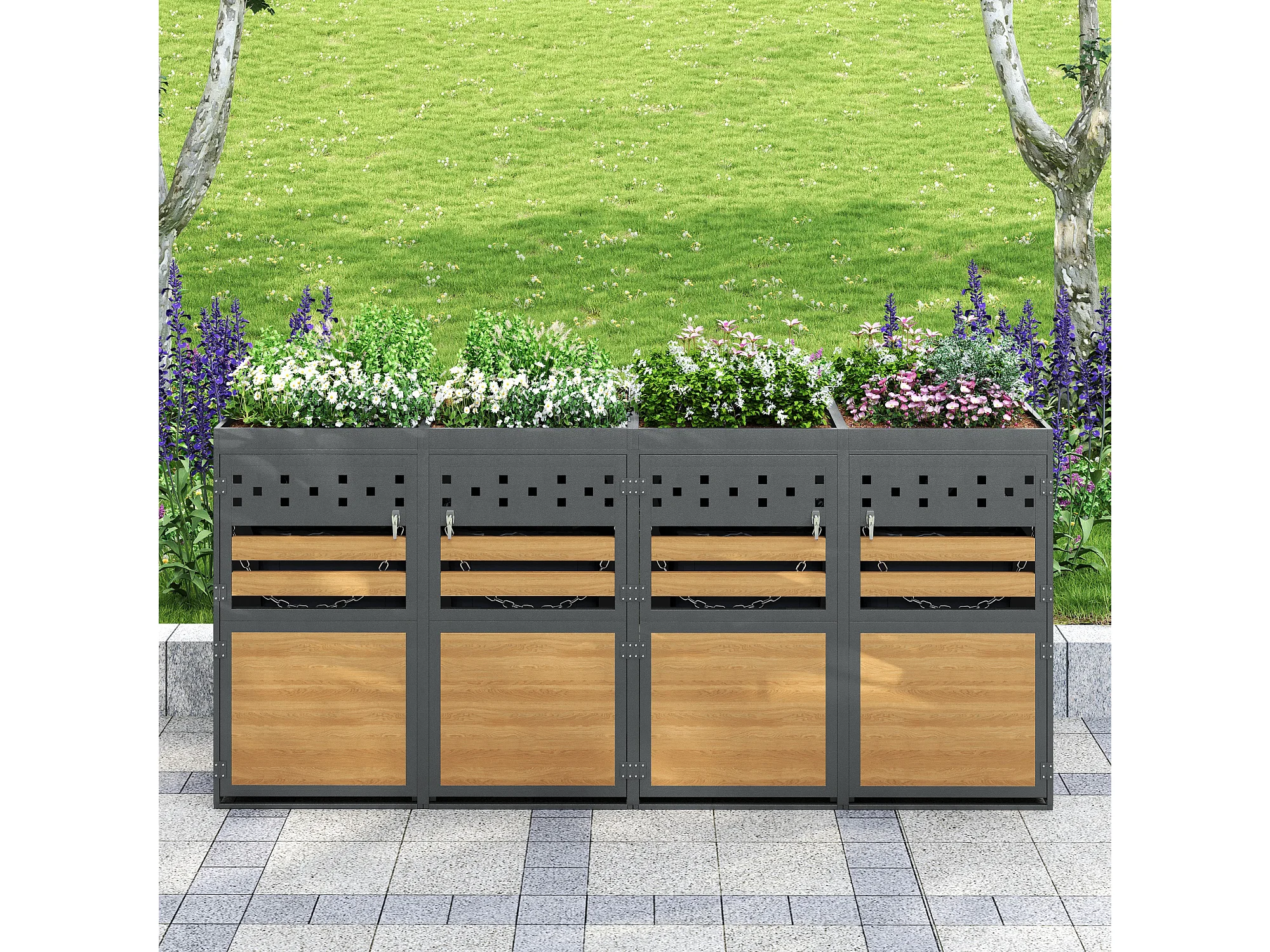 Abri pour 4 poubelles de jardin(120-240 litres)- 2 x 132 x 80 x 125 cm - avec toit végétalisé + serrure + 4 portes - métal - gris