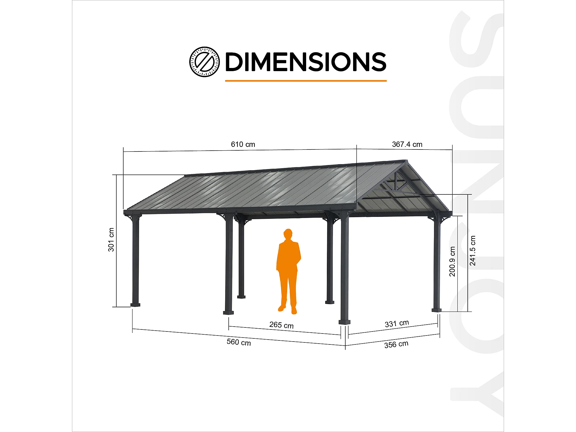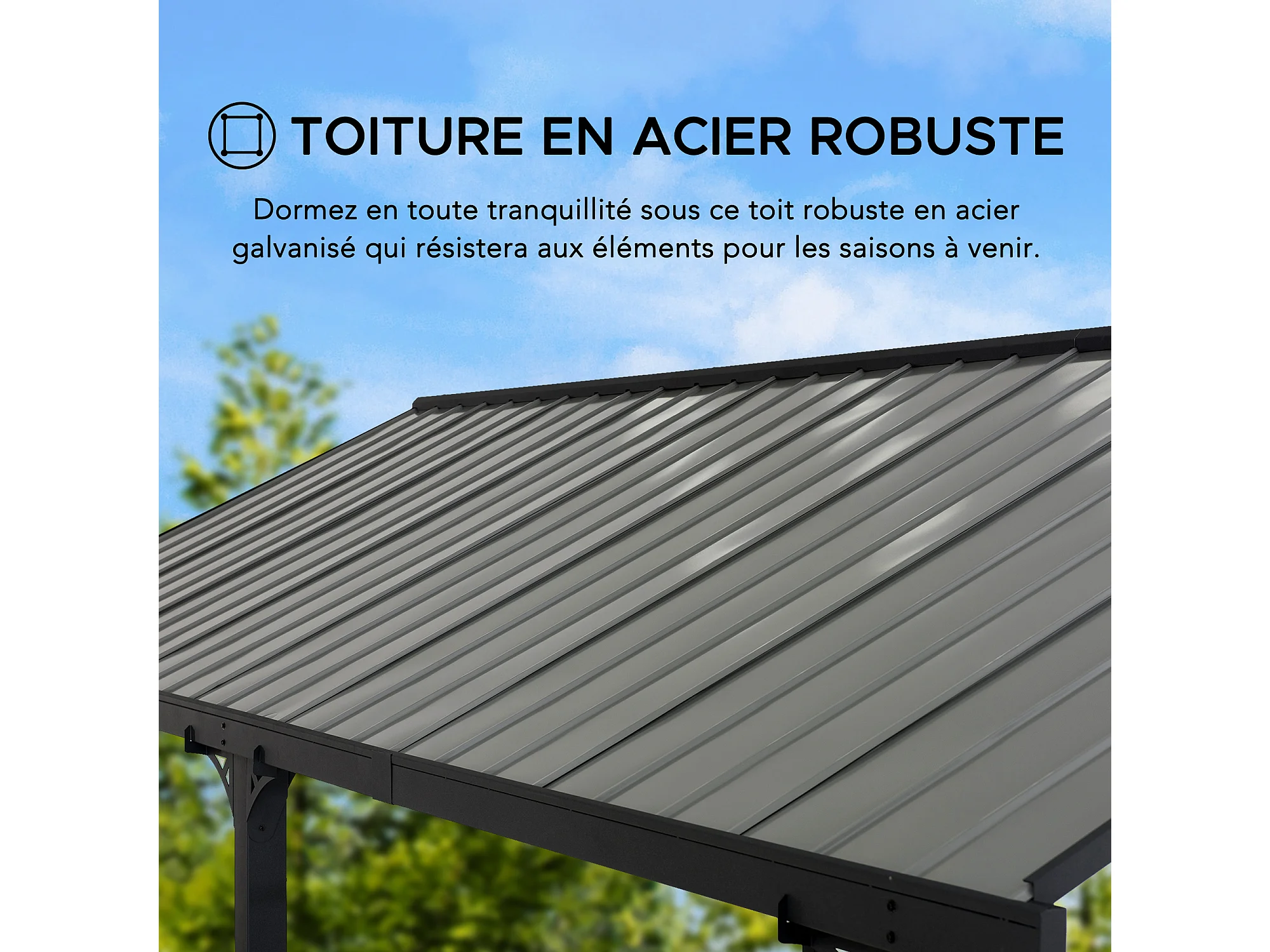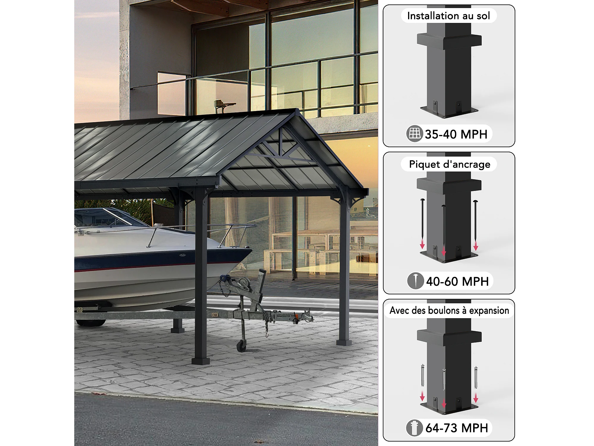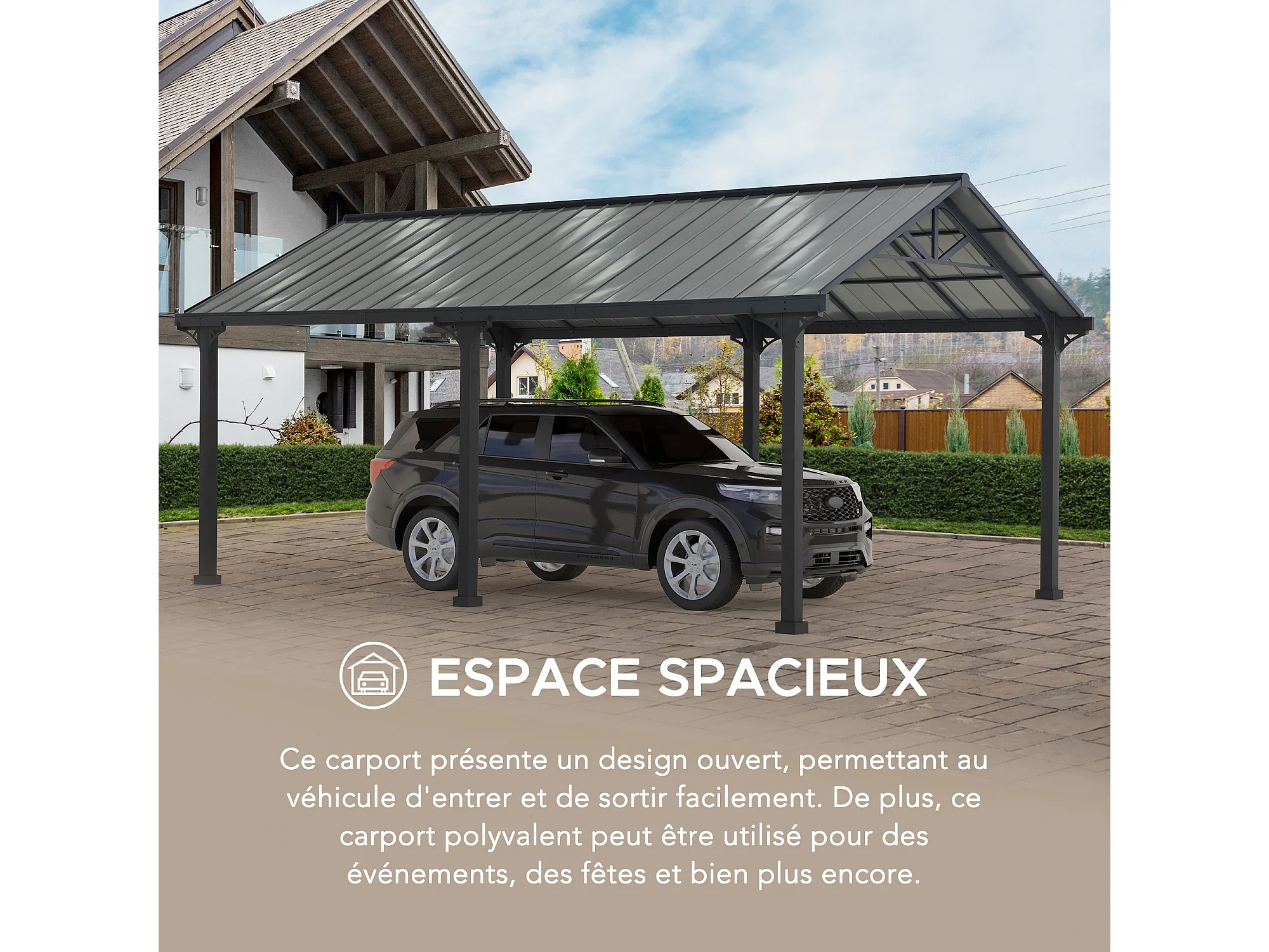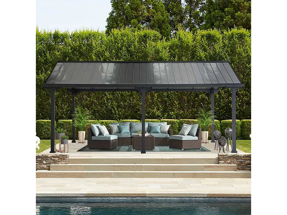 Abri voiture en métal avec toit à pignon et 2 crochets de plafond EIGER 367 cm x 610 cm