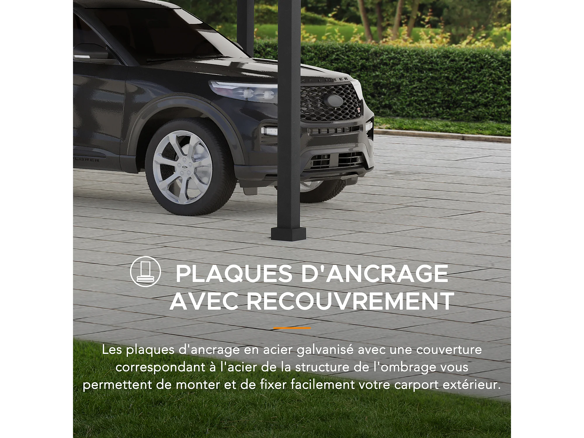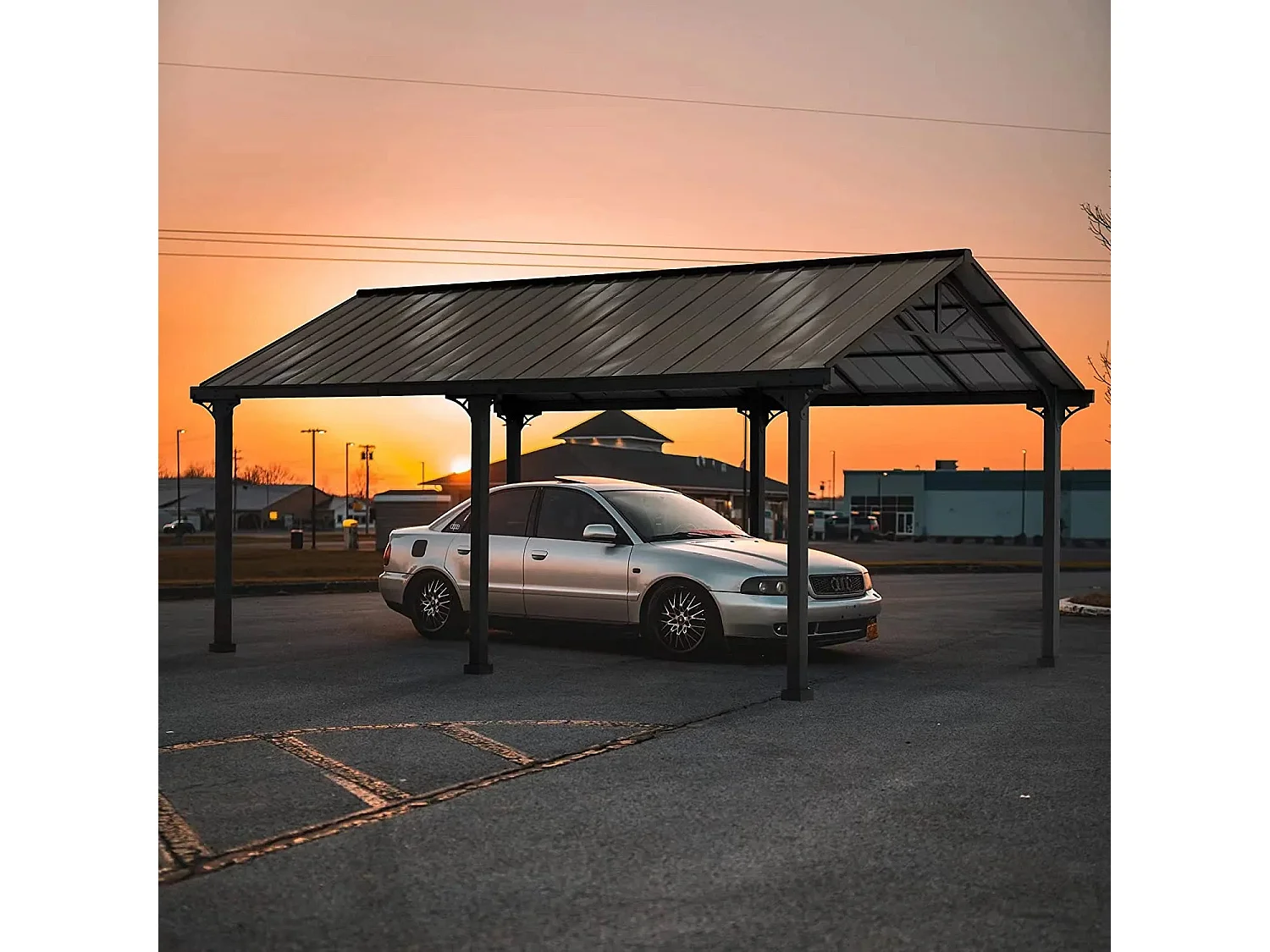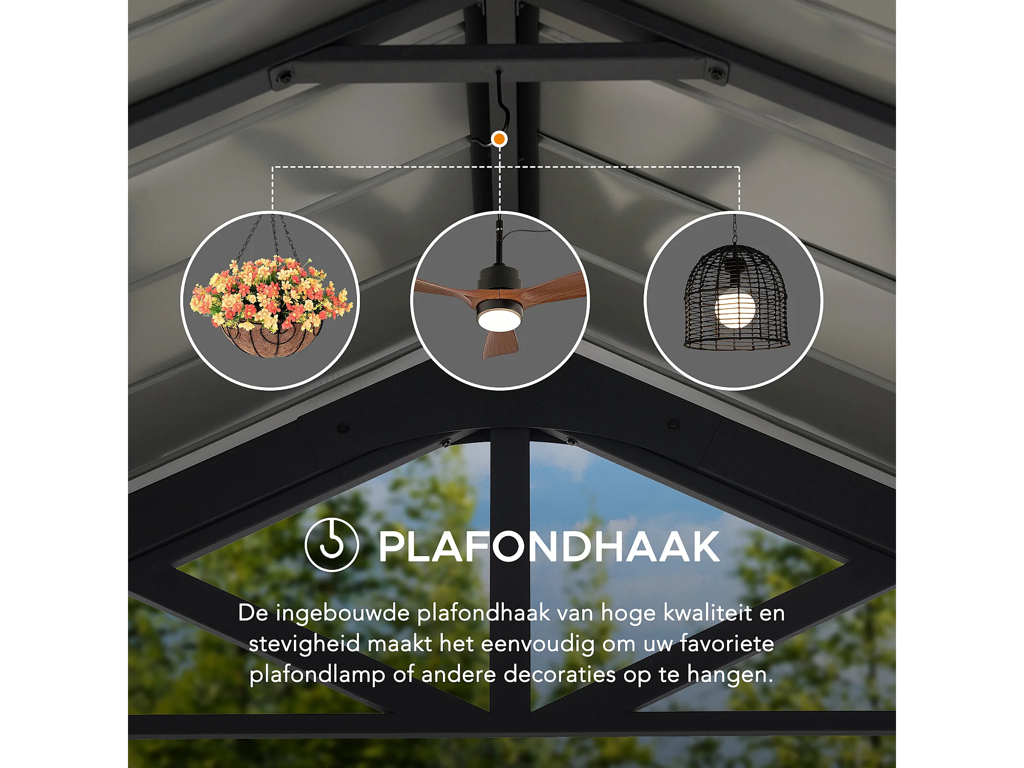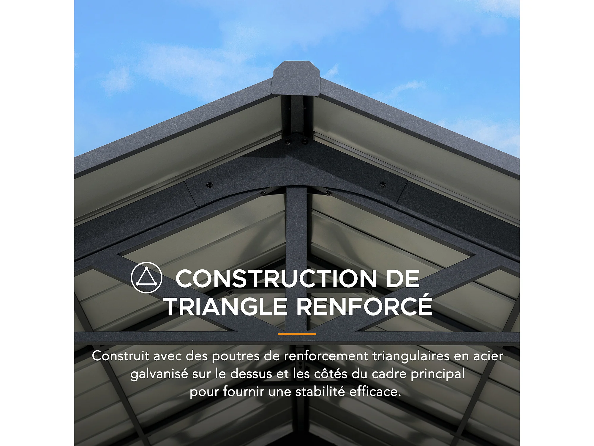 Abri voiture en métal avec toit à pignon et 2 crochets de plafond EIGER 367 cm x 610 cm
