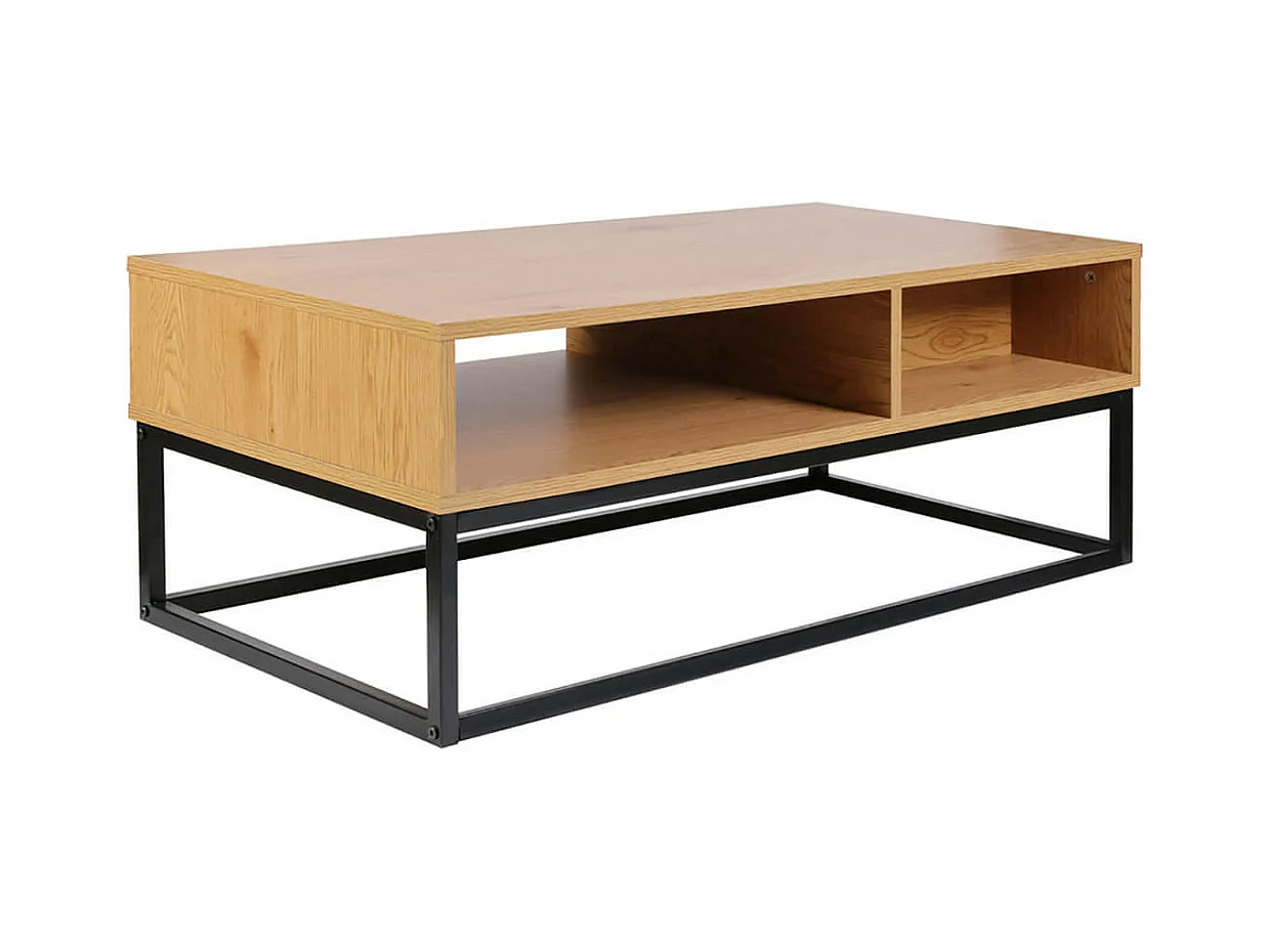 Willford Table basse, 4 espaces de rangement, teinte naturelle, noir.