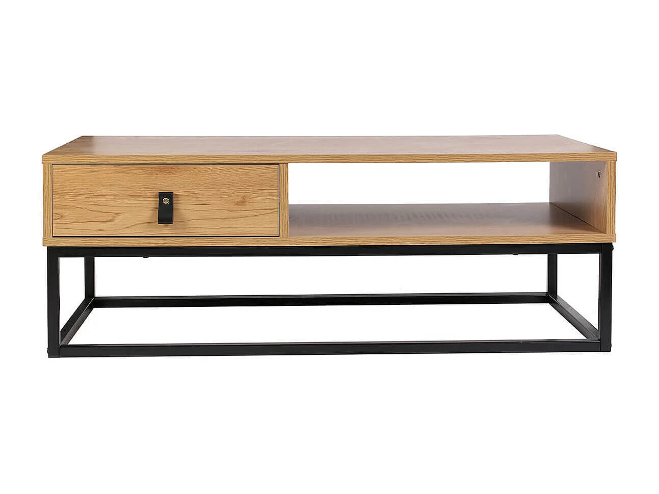 THIBAULT - Table Basse 1 Tiroir 1 Niche Effet Bois et Pieds Métal