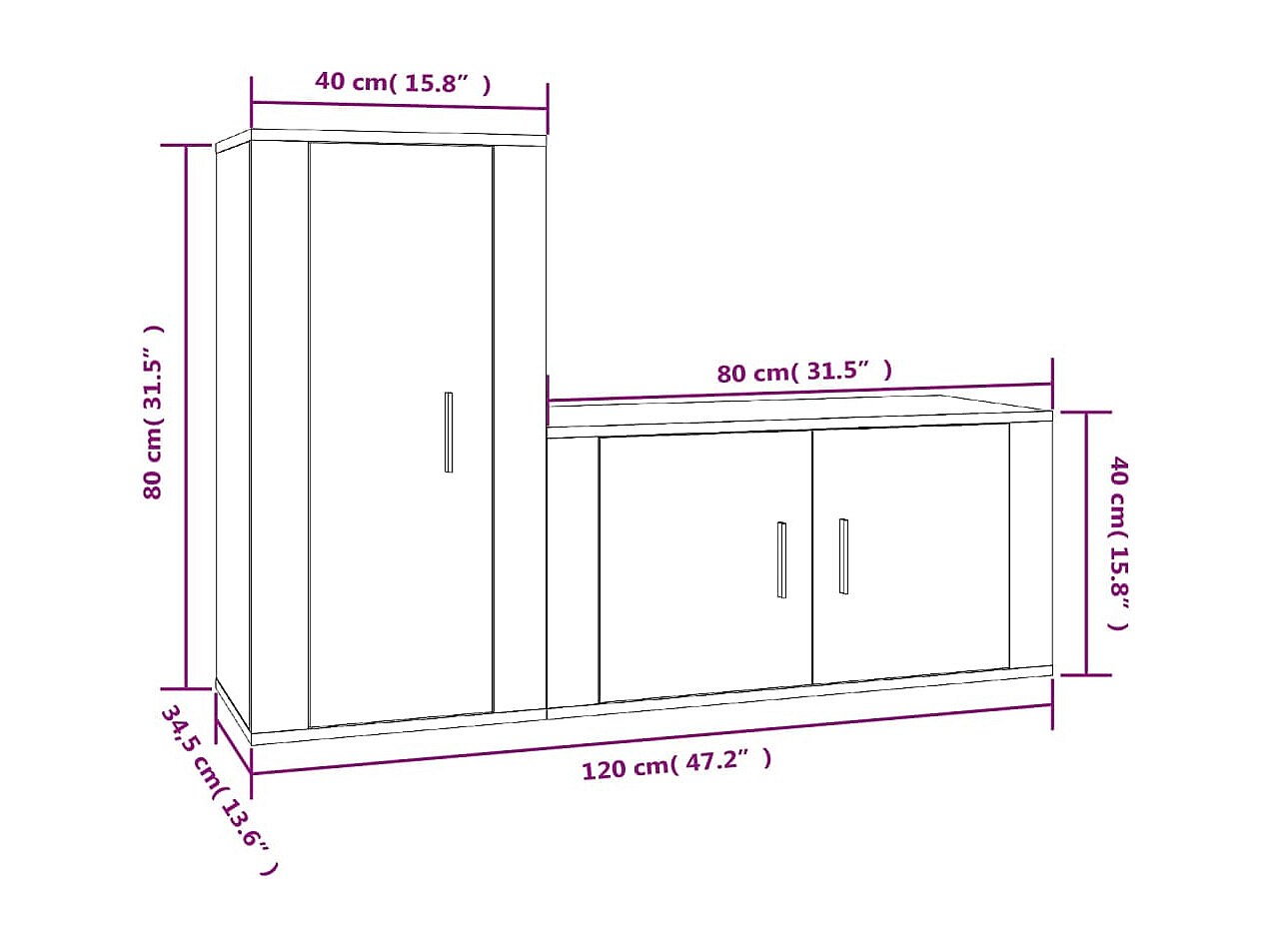 Adam Ensemble de meubles TV 2 pcs Blanc Bois d'ingénierie