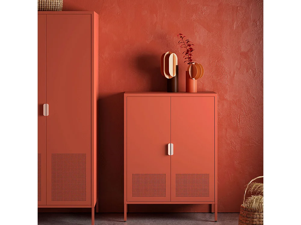 Adel - Buffet haut 2 portes en métal H110cm - Terracotta