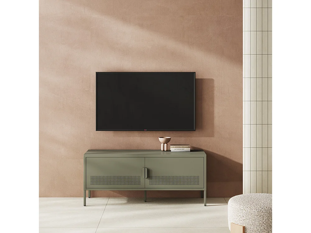 Adel - Meuble TV 2 portes en métal L120cm - Vert