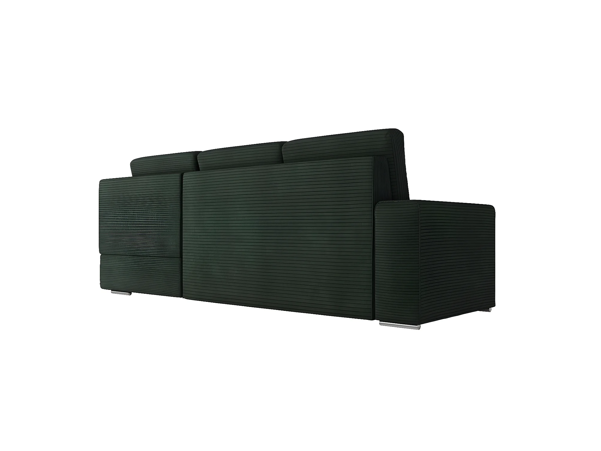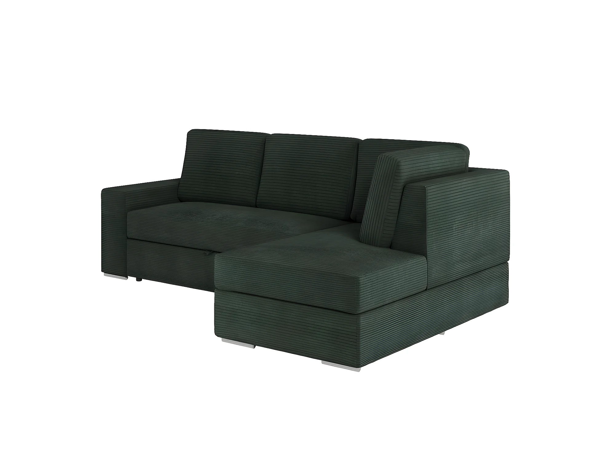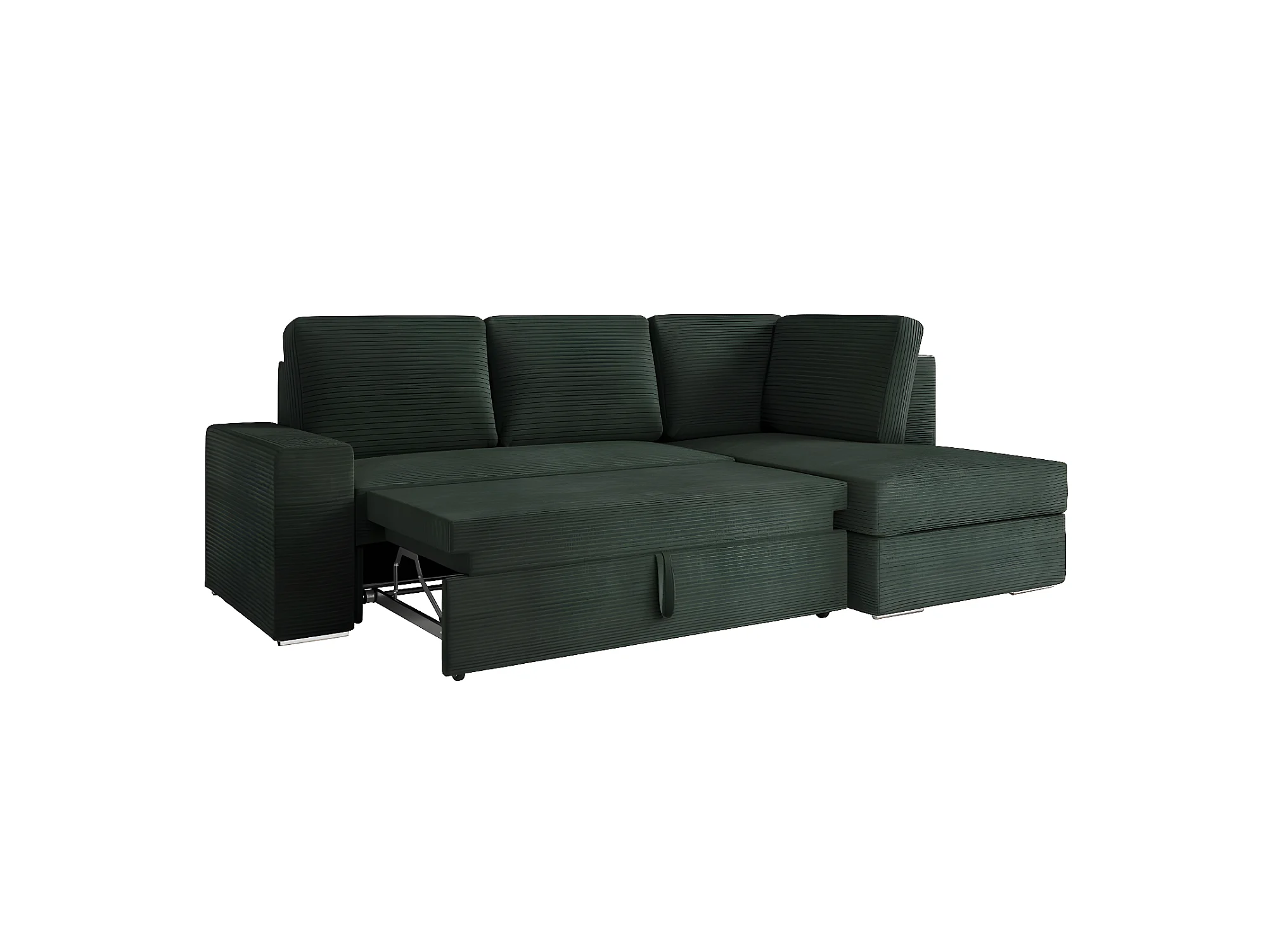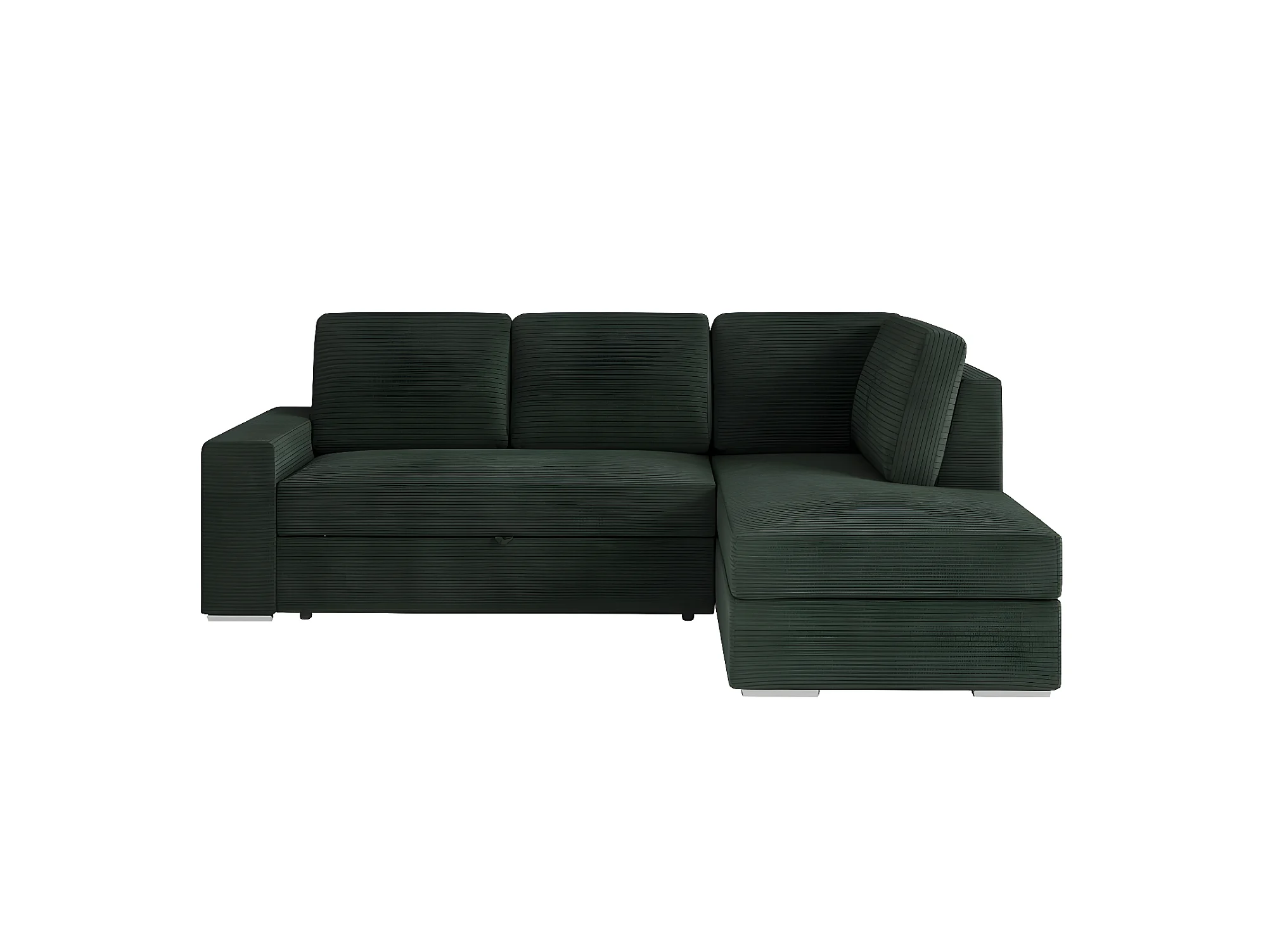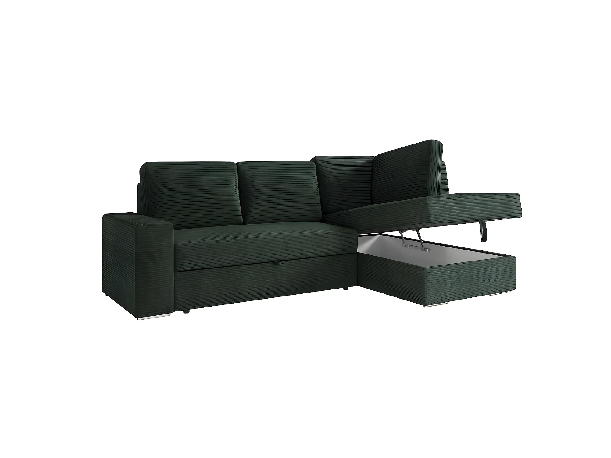 Canapé d'angle droit 3 places convertible Aden avec coffre en velours côtelé - Vert foncé - L246 x P174 x H96cm - Loungitude