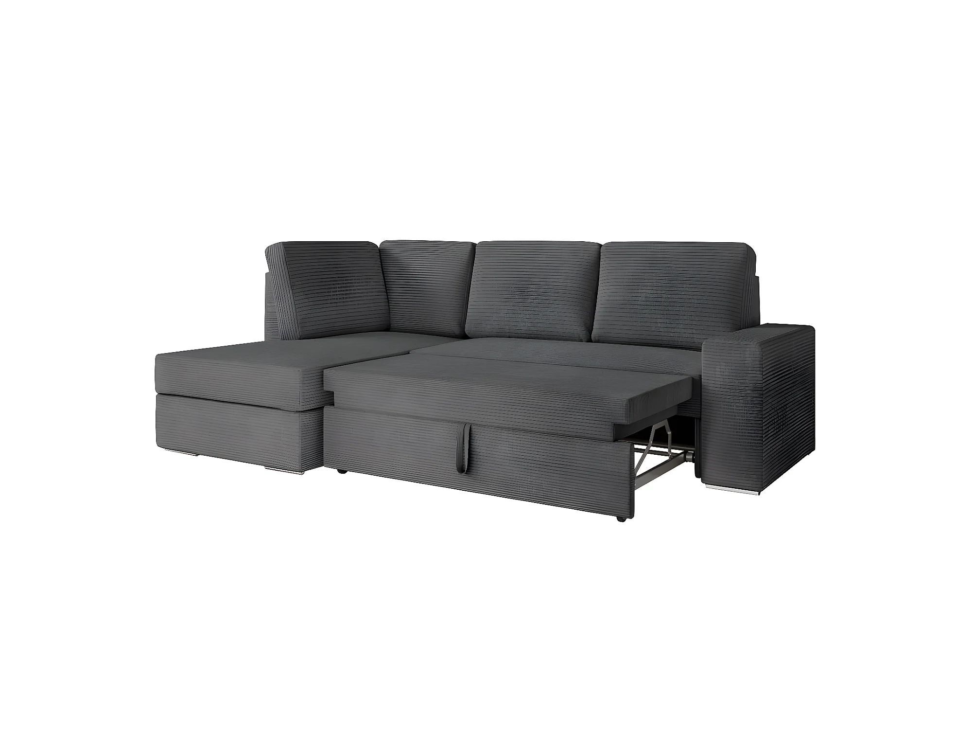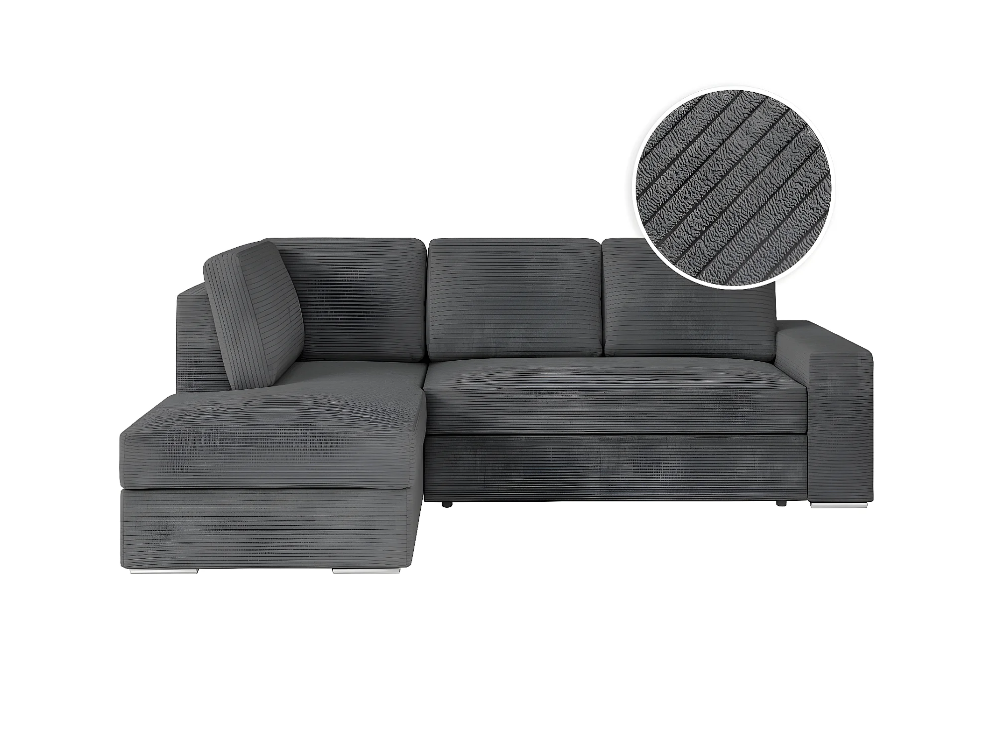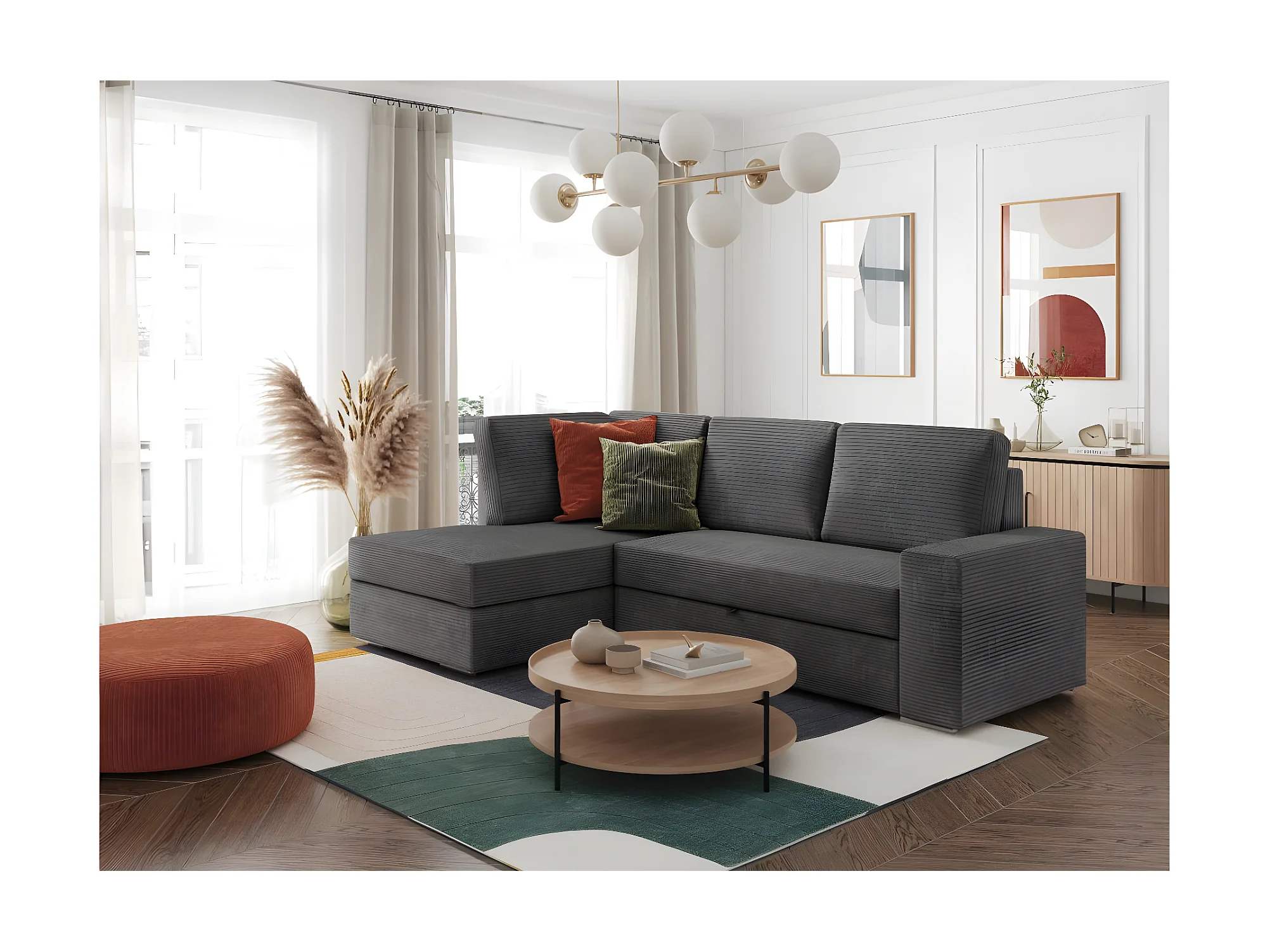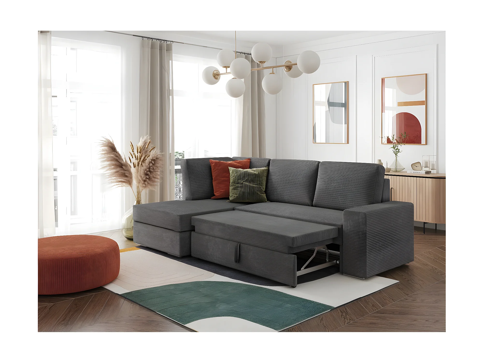 Canapé d'angle gauche 3 places convertible Aden avec coffre en velours côtelé - Gris anthracite - L246 x P174 x H96cm - Loungitude