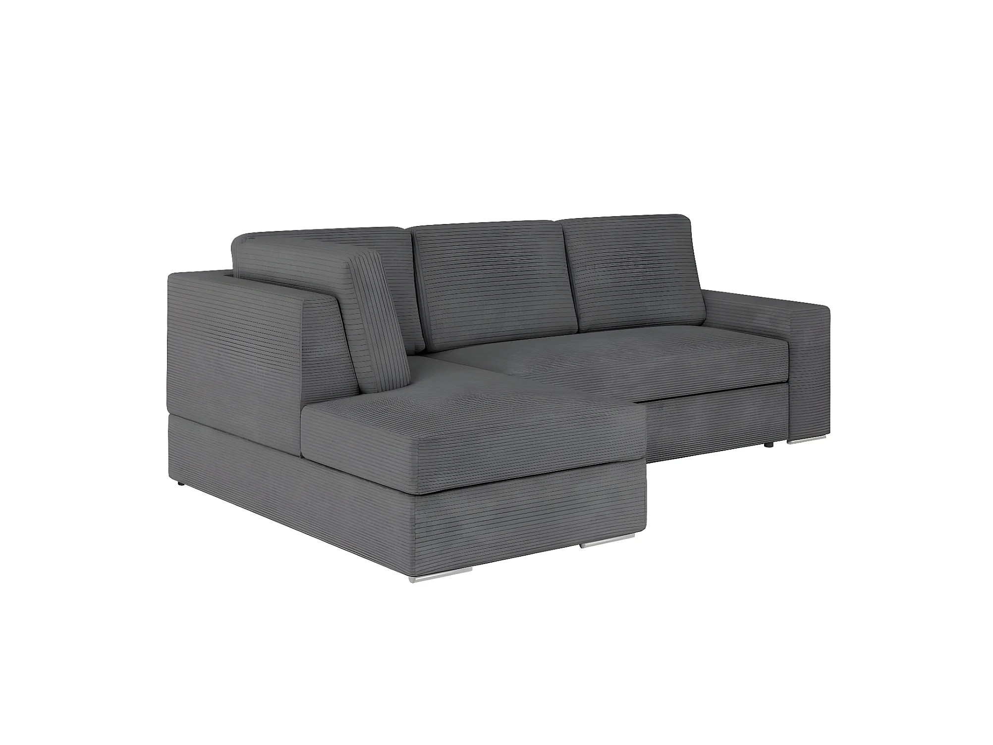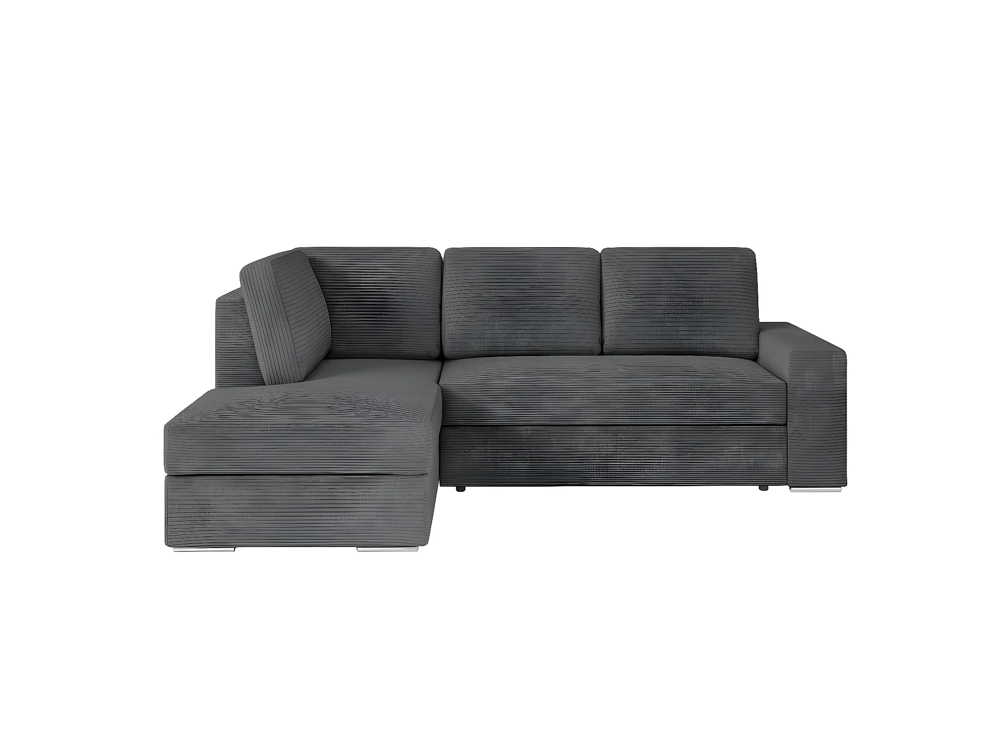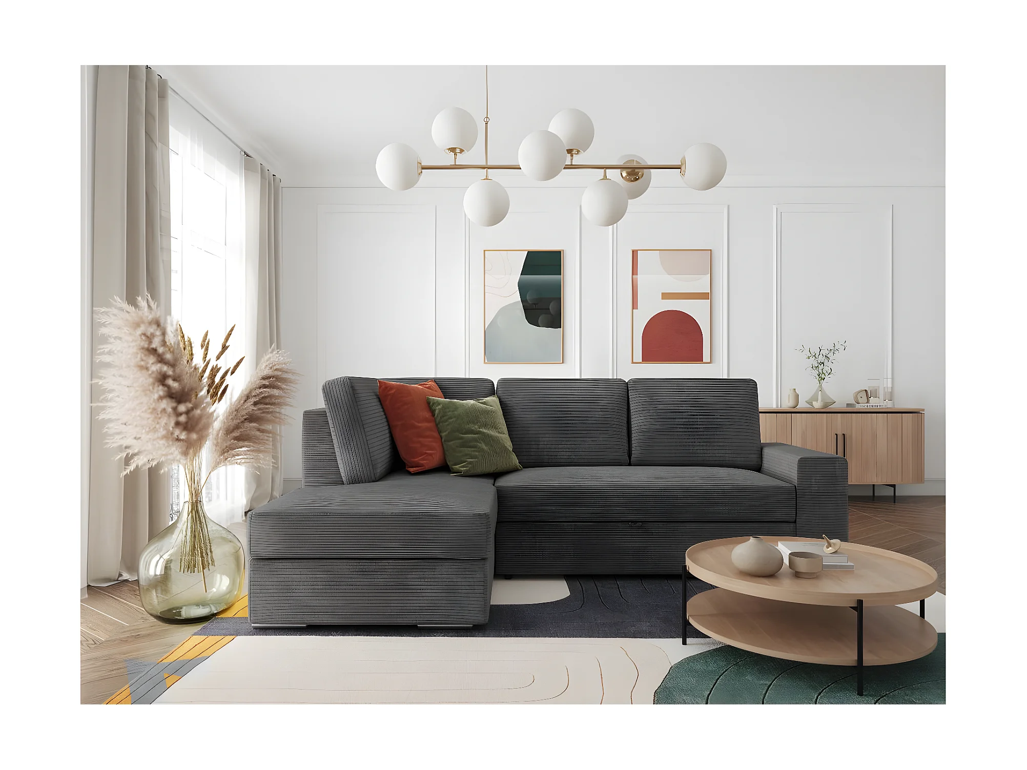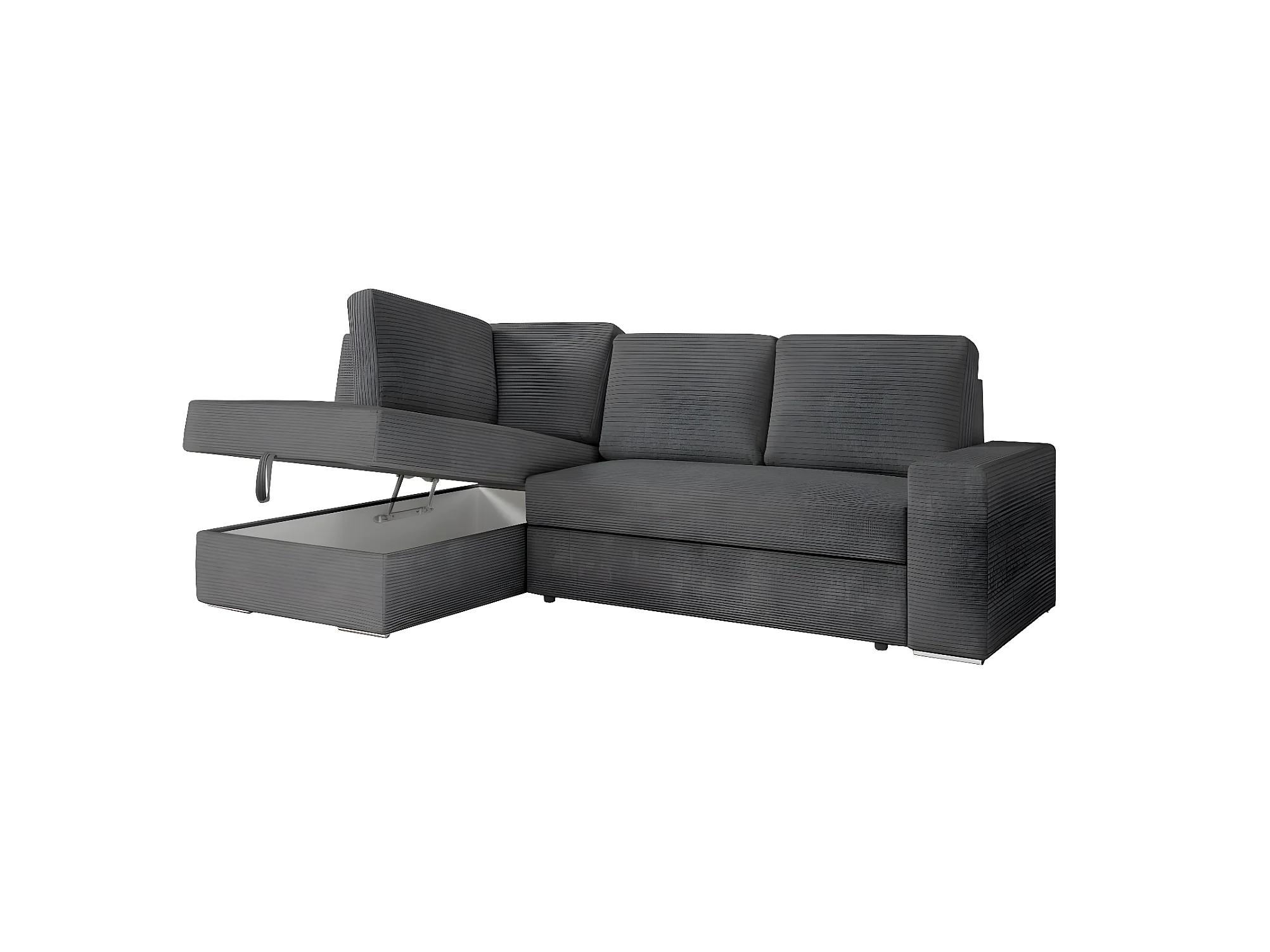 Canapé d'angle gauche 3 places convertible Aden avec coffre en velours côtelé - Gris anthracite - L246 x P174 x H96cm - Loungitude