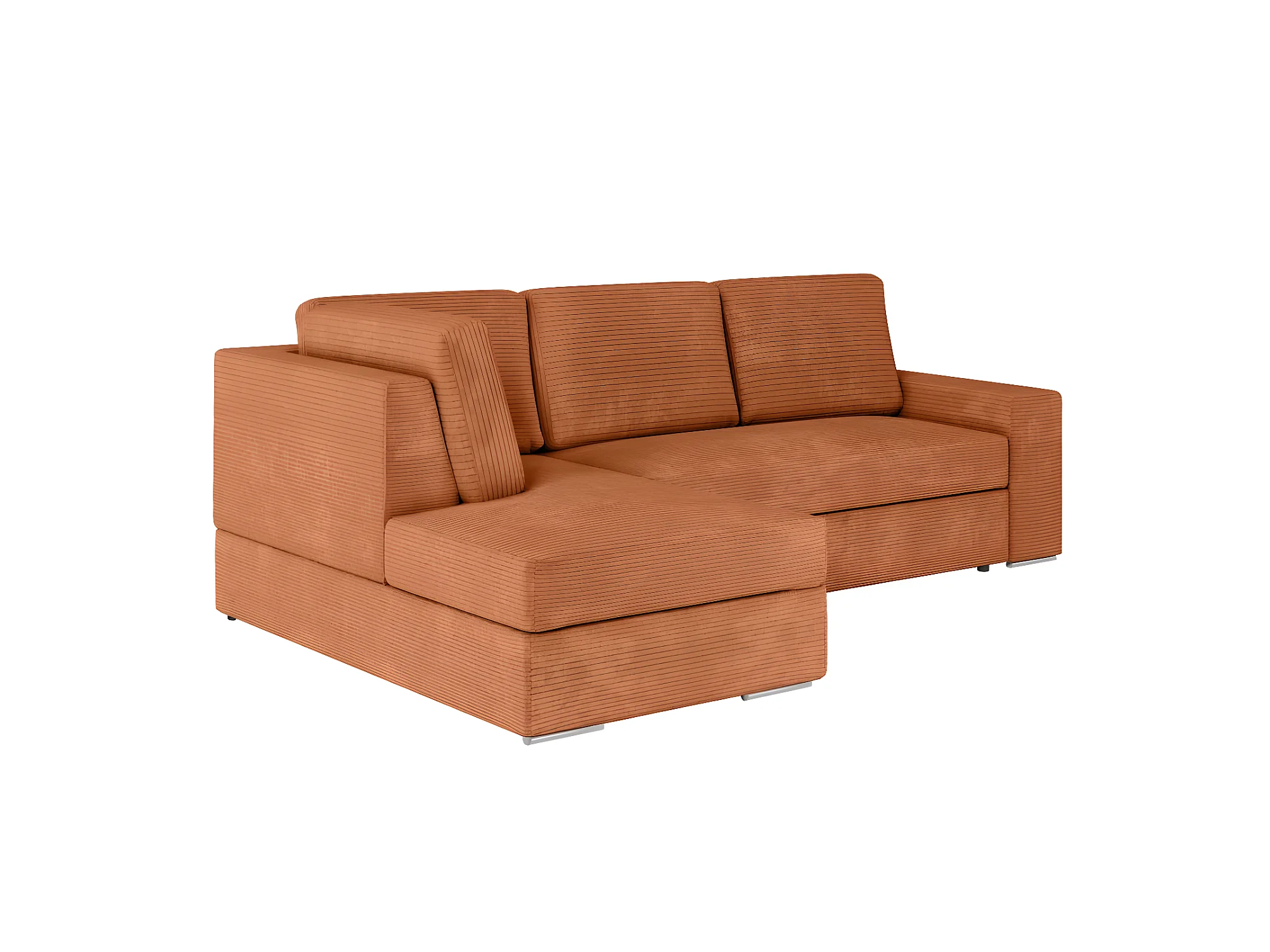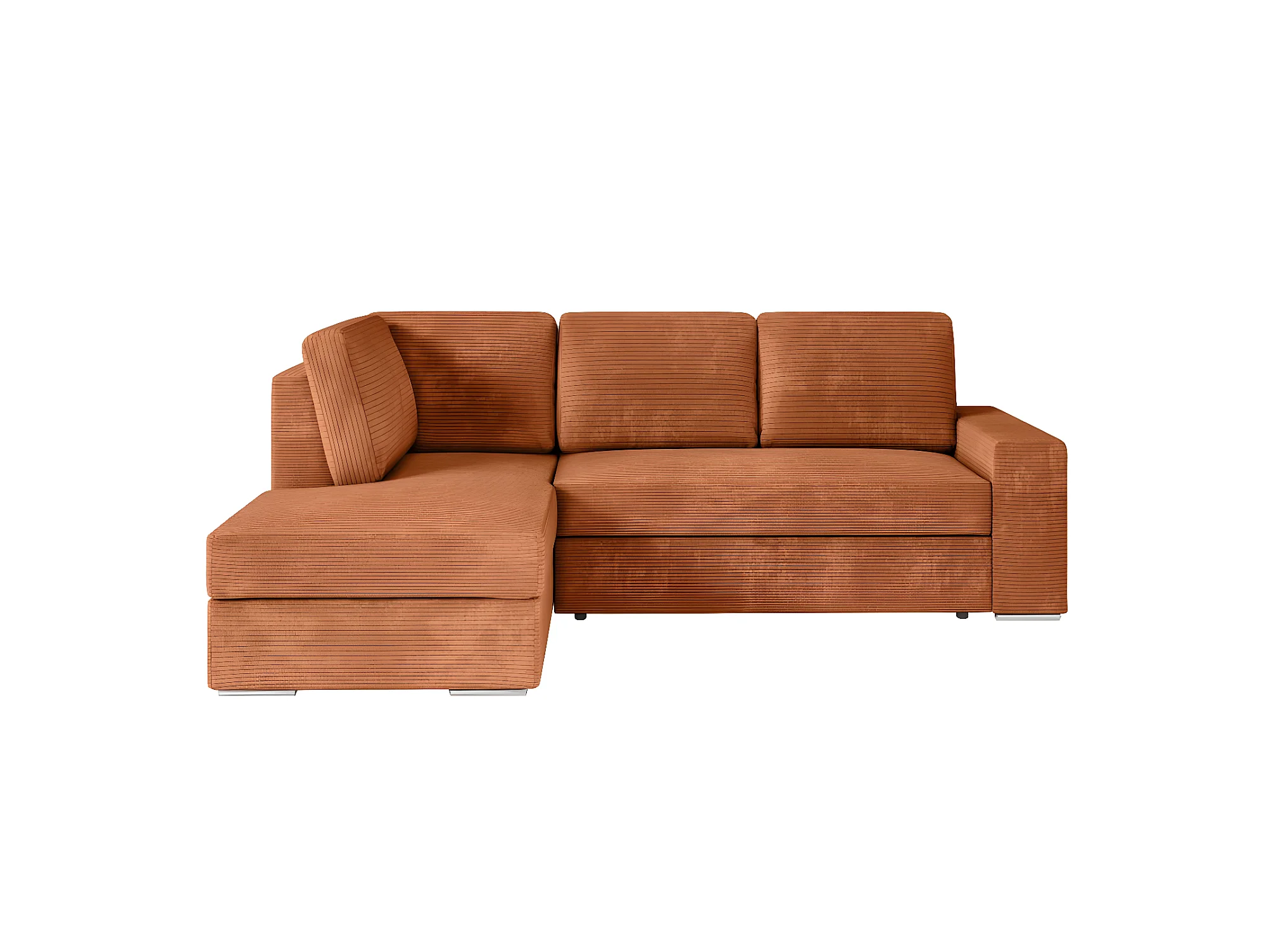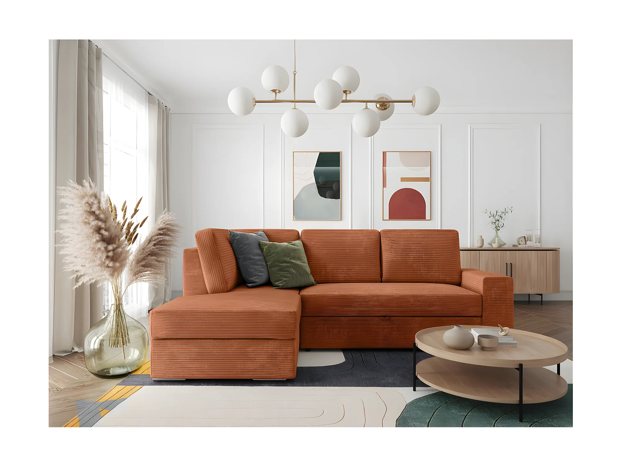 Canapé d'angle gauche 3 places convertible Aden avec coffre en velours côtelé - Terracotta - L246 x P174 x H96cm - Loungitude