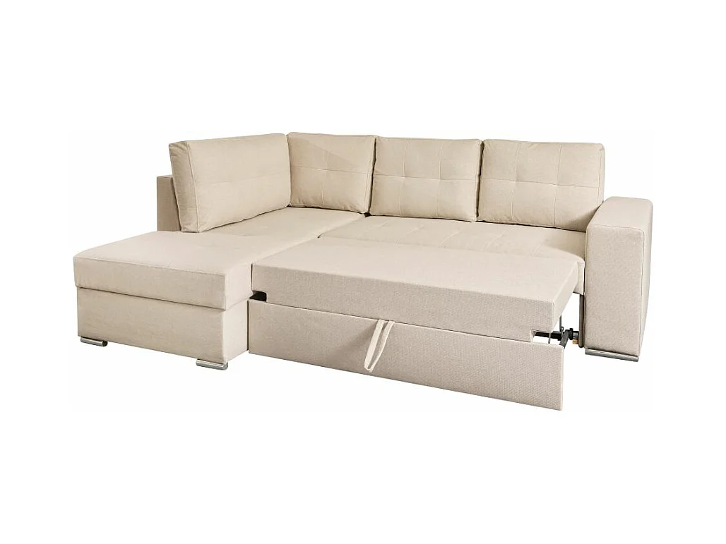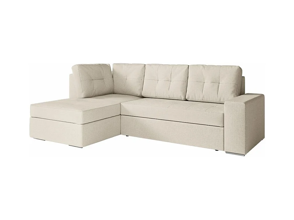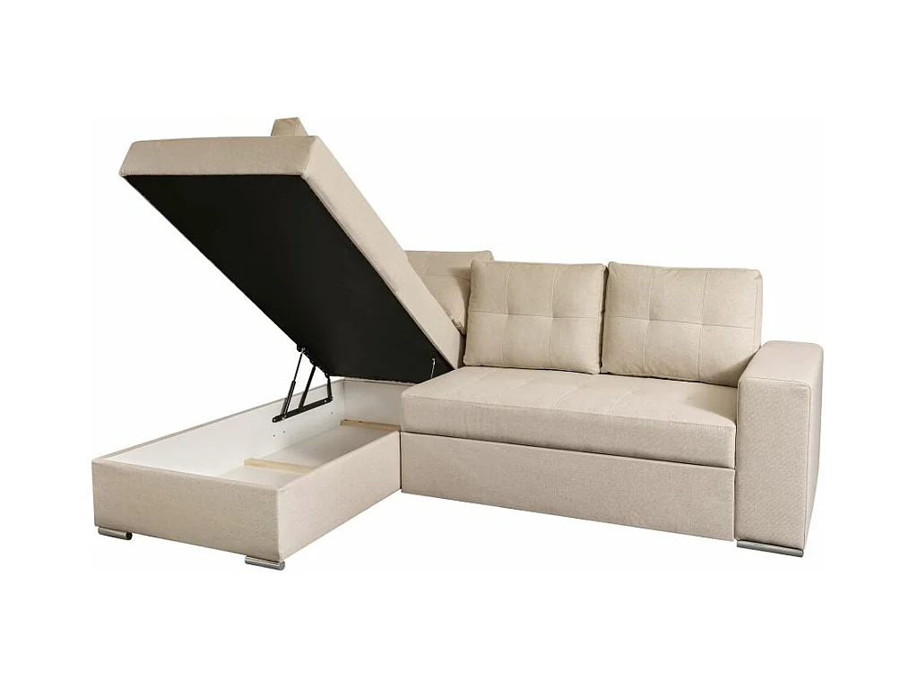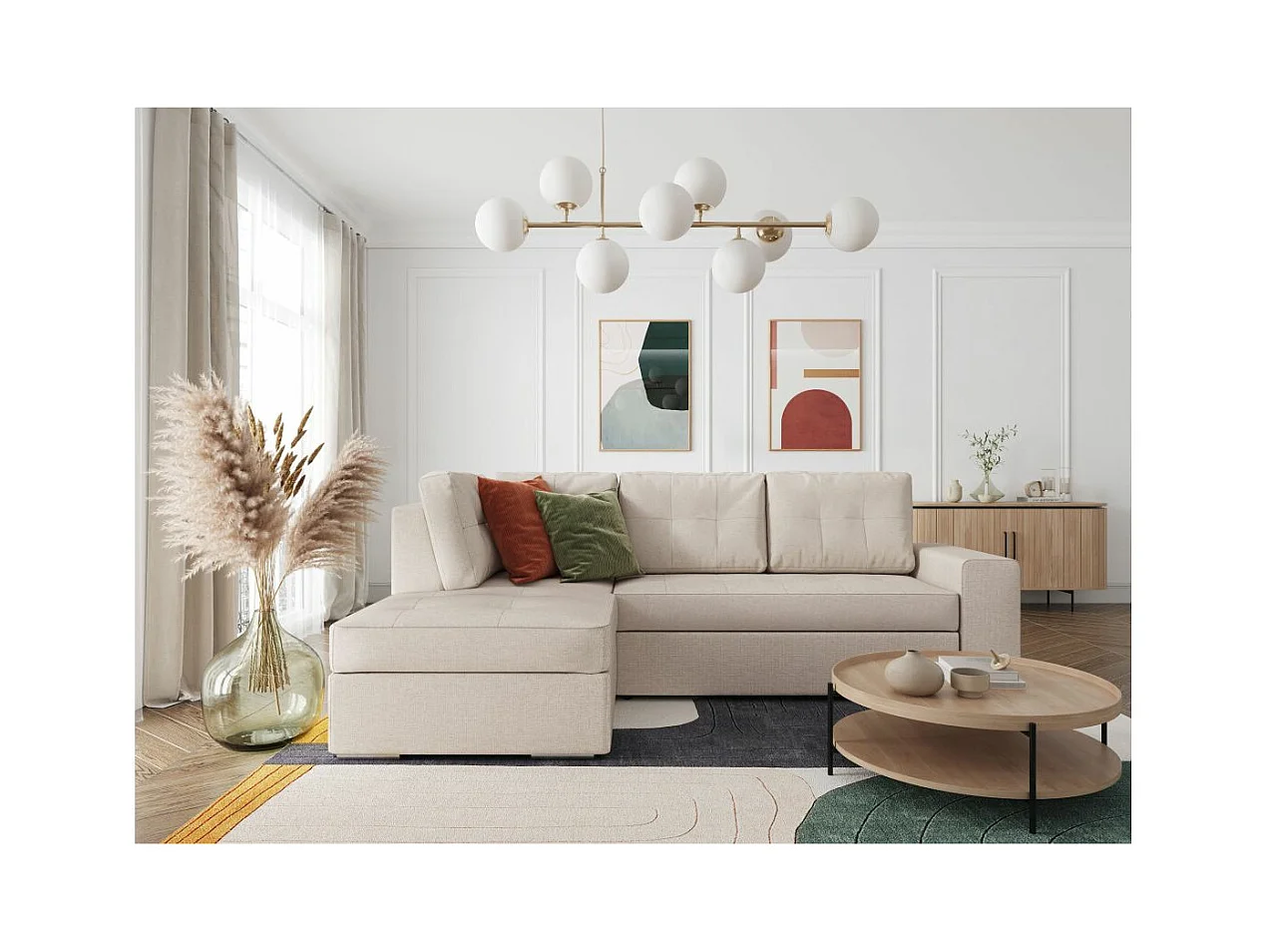 Canapé d'angle gauche 3 places convertible Aden avec coffre en tissu - Beige - L246 x P174 x H96cm - Loungitude