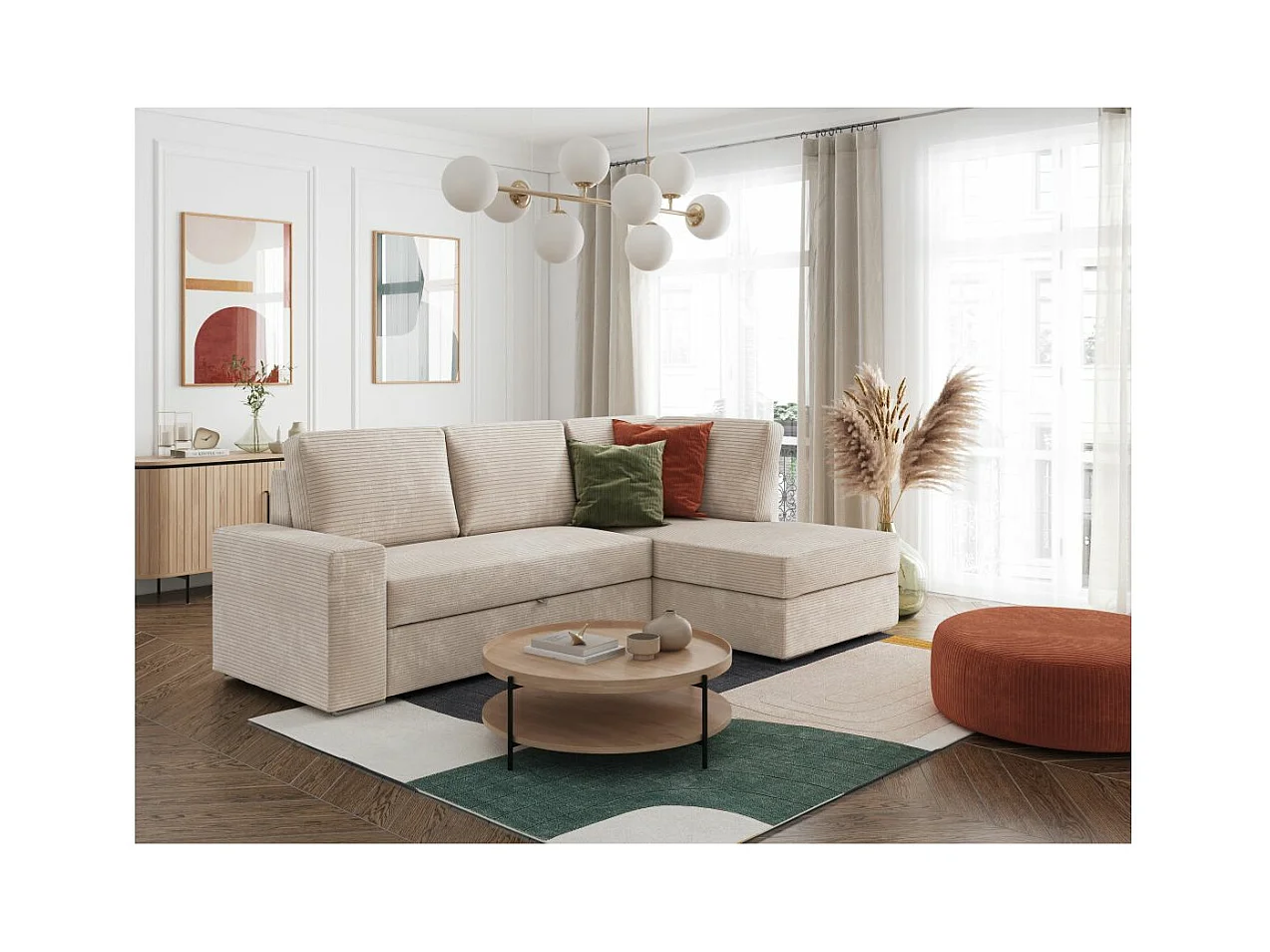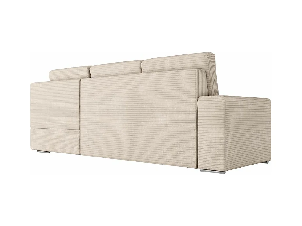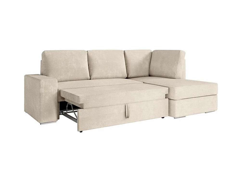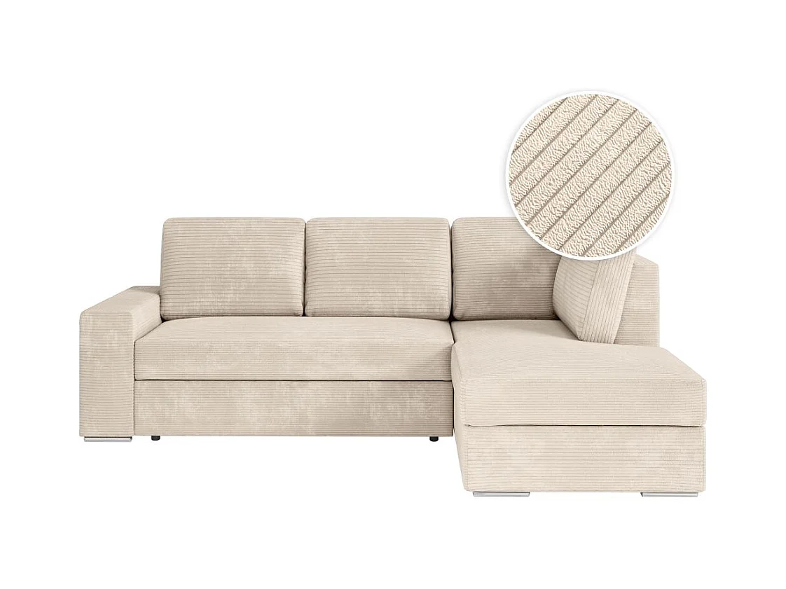 Canapé d'angle droit 3 places convertible Aden avec coffre en velours côtelé - Beige - L246 x P174 x H96cm - Loungitude
