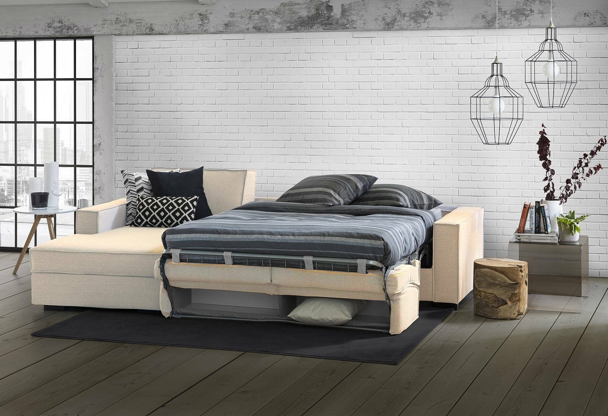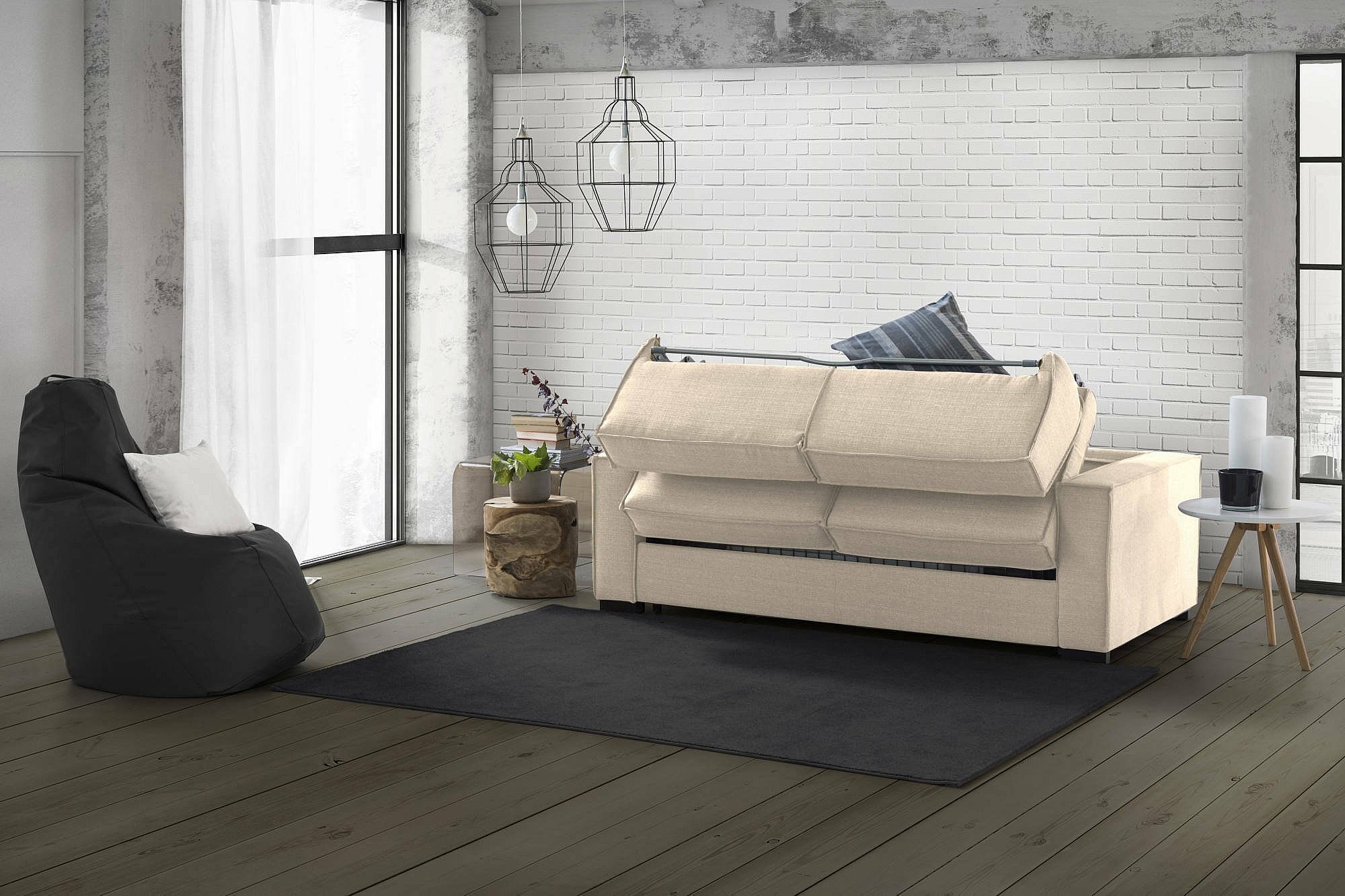 Adima Canapé-lit, Canapé d'angle, 100% Made in Italy, Canapé avec ouverture pivotante, Péninsule de rangement gauche, avec accoudoirs fins, 260x95h90 cm, Beige