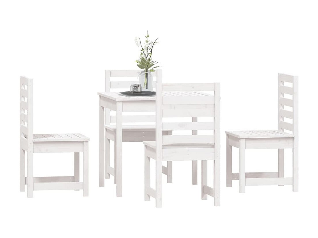 Adrien Ensemble à manger de jardin 5 pcs blanc bois massif de pin