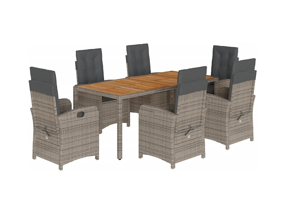 Adrien-Paul Ensemble à manger de jardin et coussins 7 pcs gris rotin