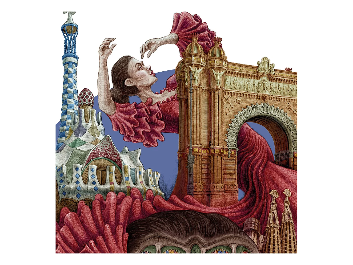 Affiche, décor de ville espagnole, Barcelone, 42x59,4 cm art de Barcelone, imprimé urbain Barcelone.