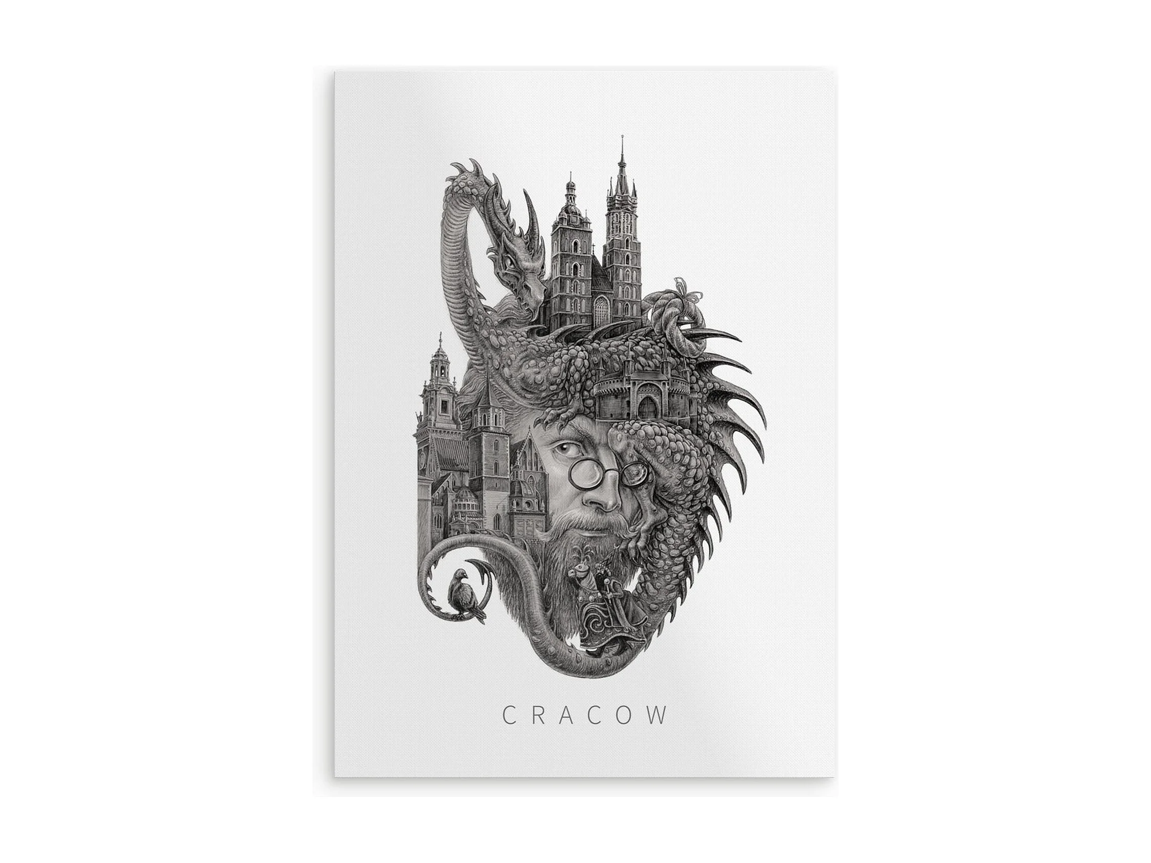 Affiche, décor de ville polonaise, art Cracovie, impression murale minimaliste Cracovie 21x29,7 cm.