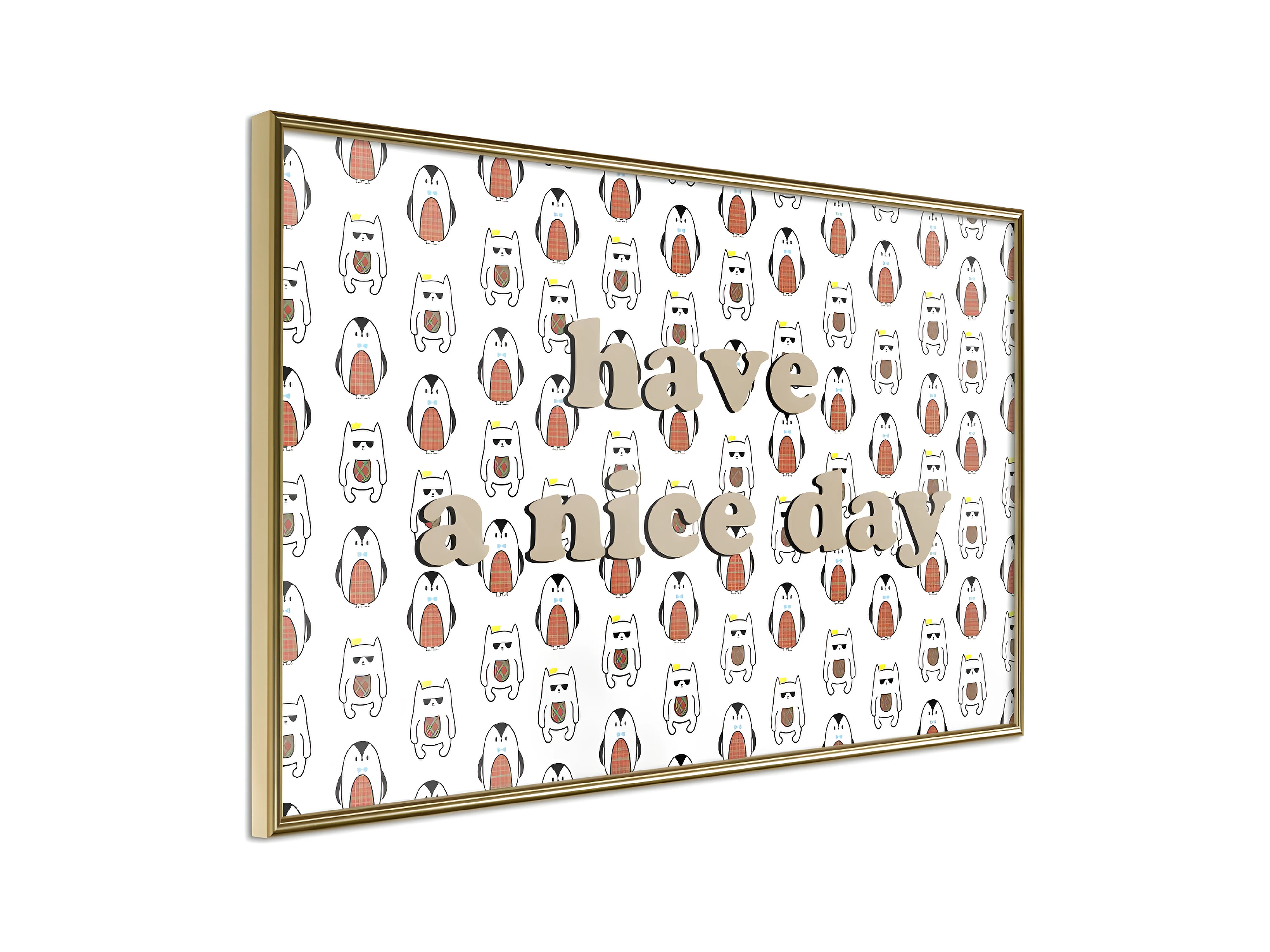Affiche Murale Encadrée "Animals Wish a Nice Day" 30 x 20 cm Or