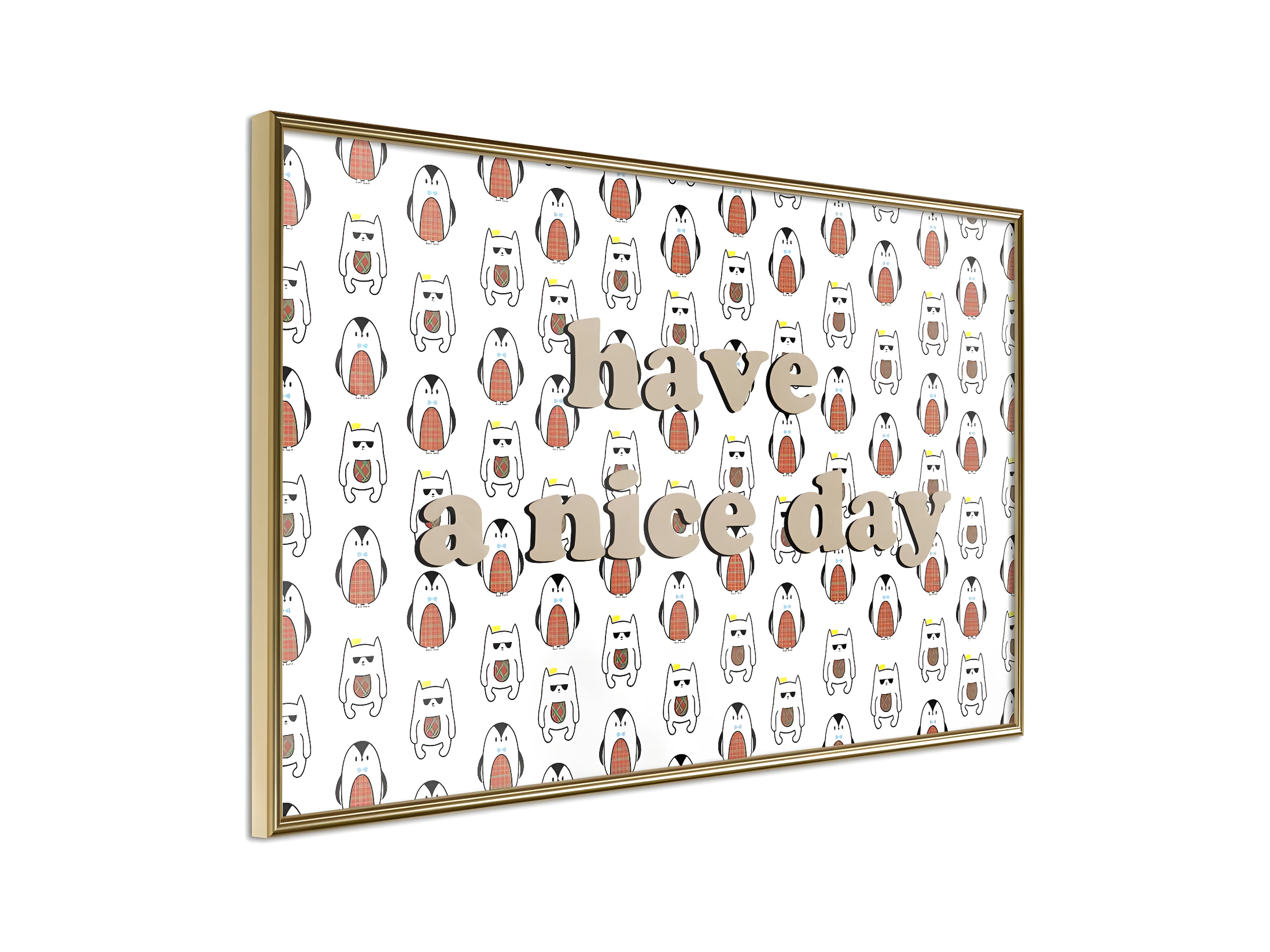Affiche Murale Encadrée "Animals Wish a Nice Day" 45 x 30 cm Or