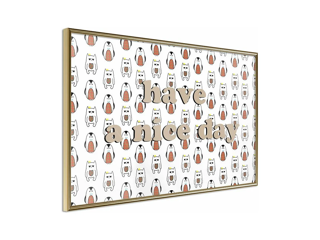Affiche Murale Encadrée "Animals Wish a Nice Day" 90 x 60 cm Or