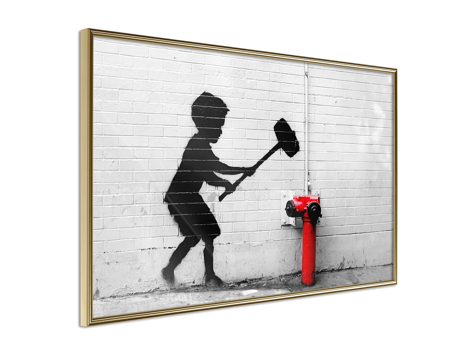 Affiche Murale Encadrée "Banksy Hammer Boy" 60 x 40 cm Or