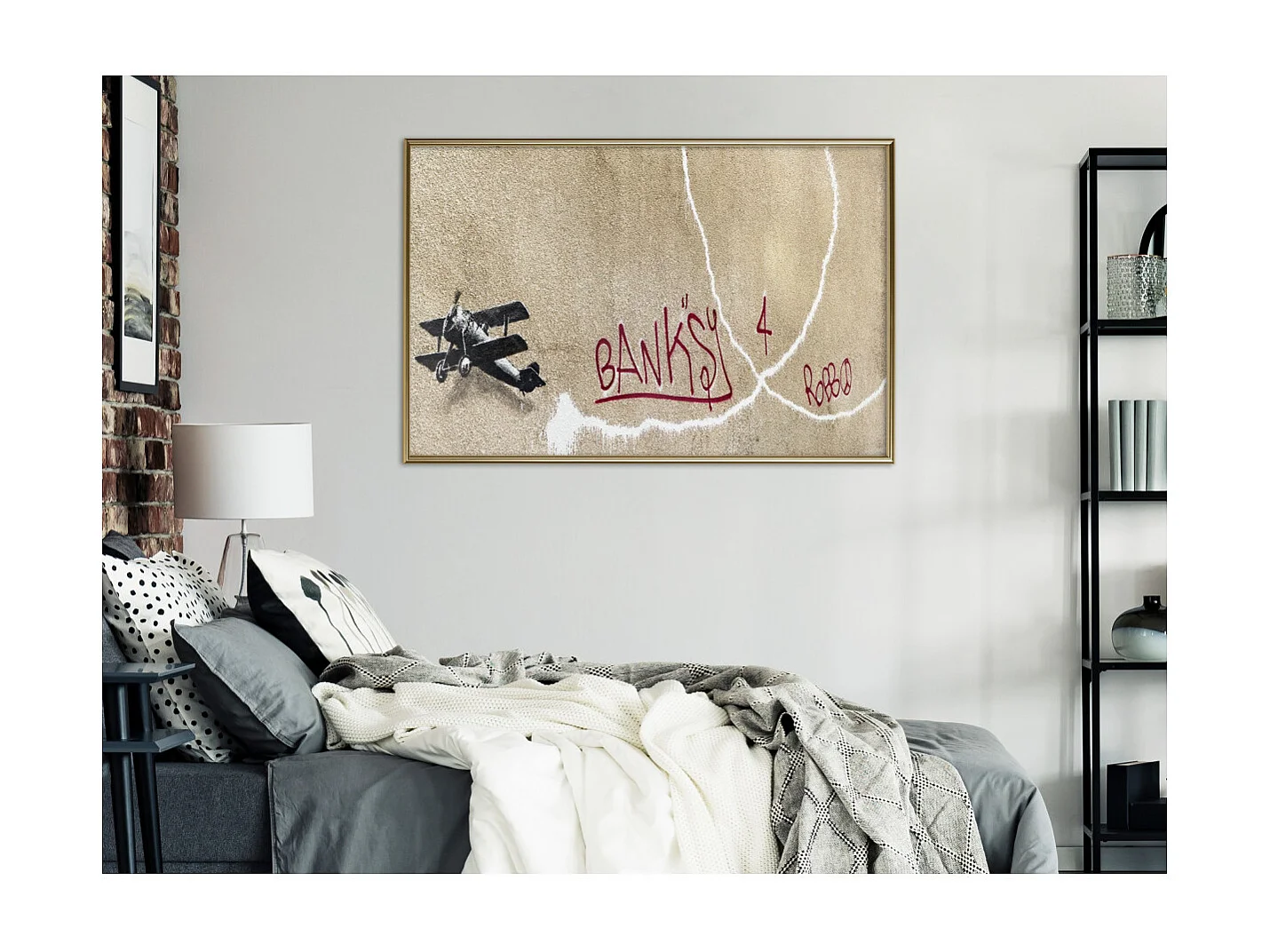 Affiche Murale Encadrée "Banksy Love Plane" 90 x 60 cm Or