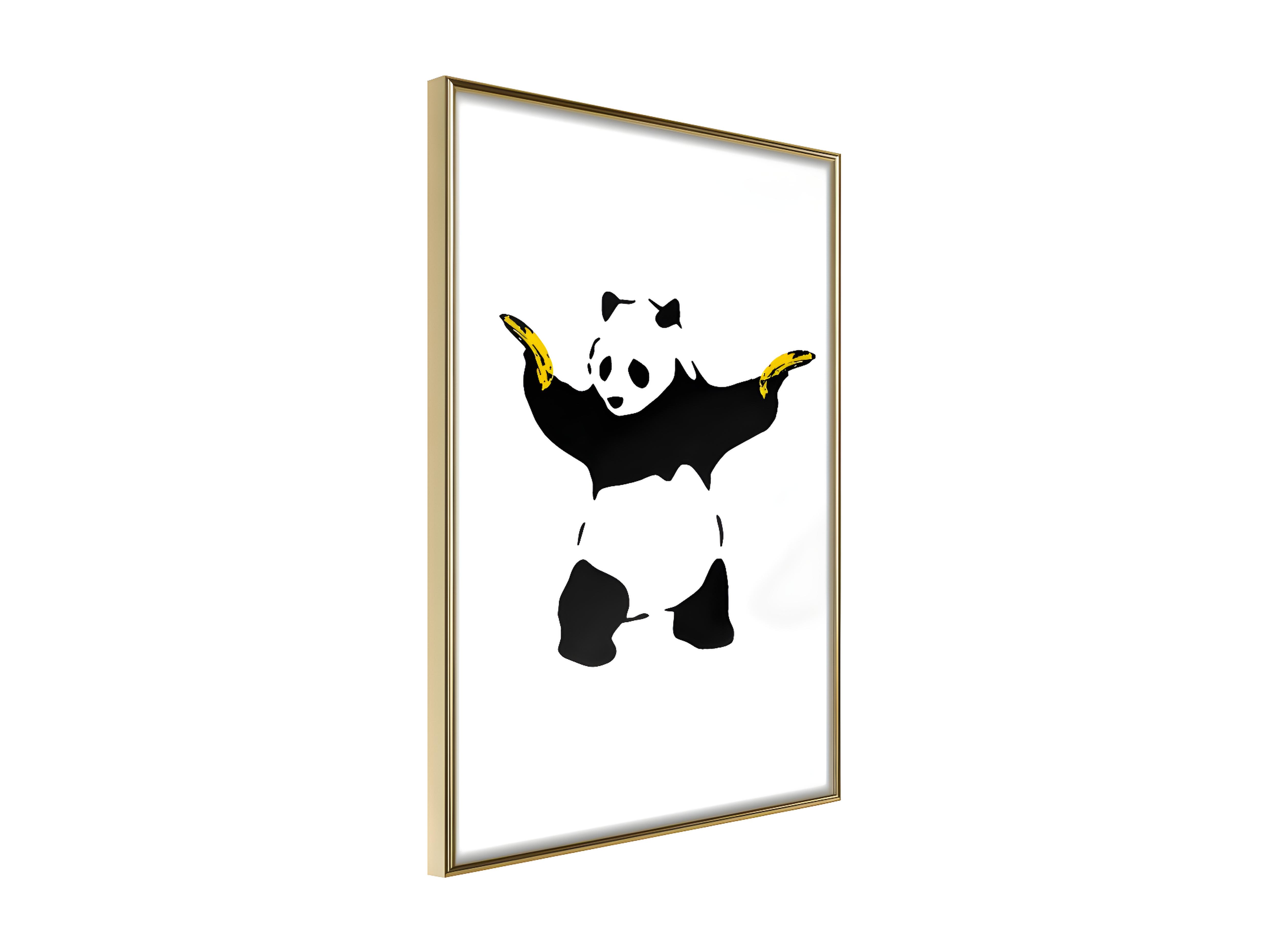 Affiche Murale Encadrée "Banksy Panda With Guns" 21 x 30 cm Or