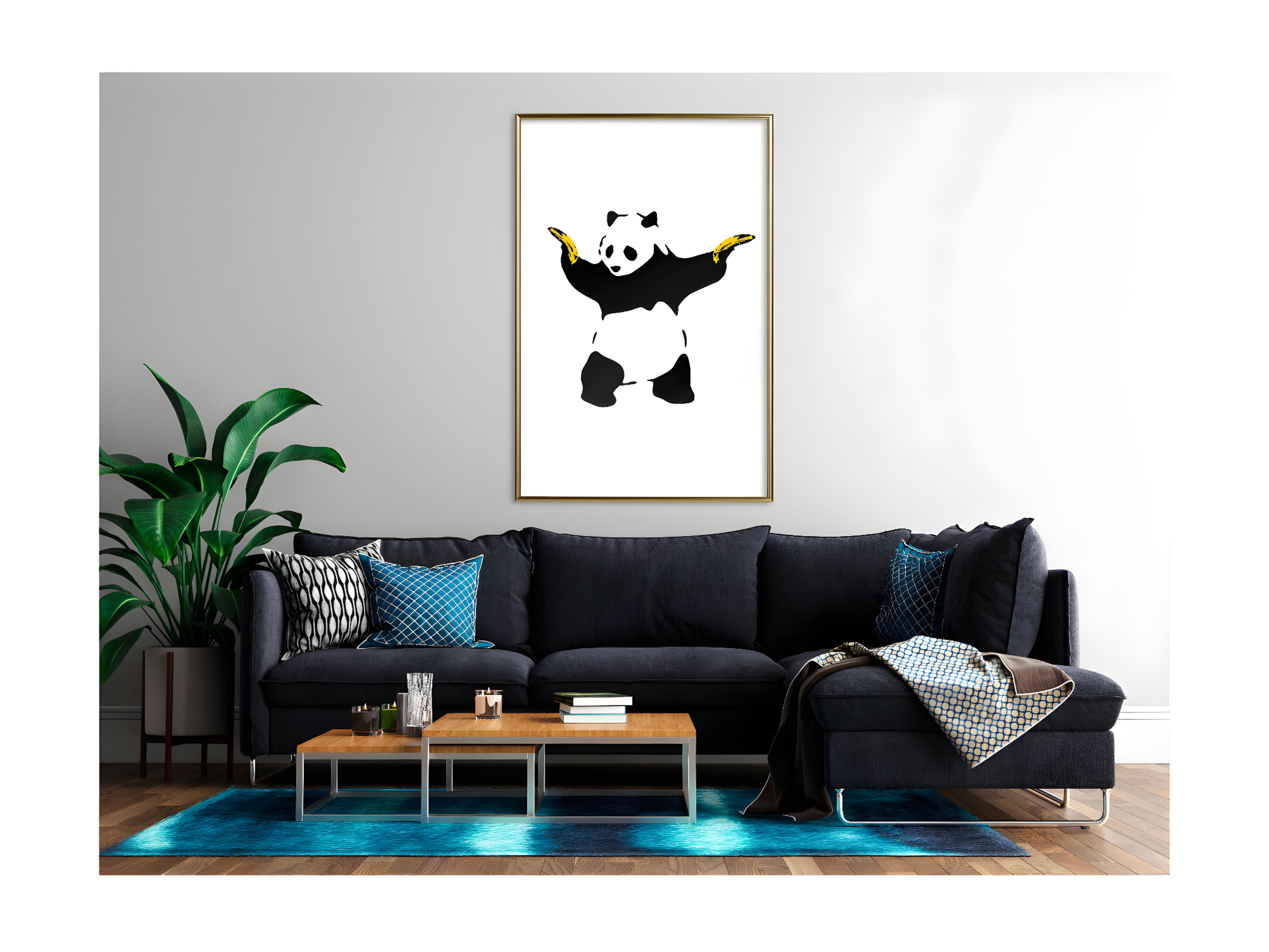 Affiche Murale Encadrée "Banksy Panda With Guns" 40 x 60 cm Or