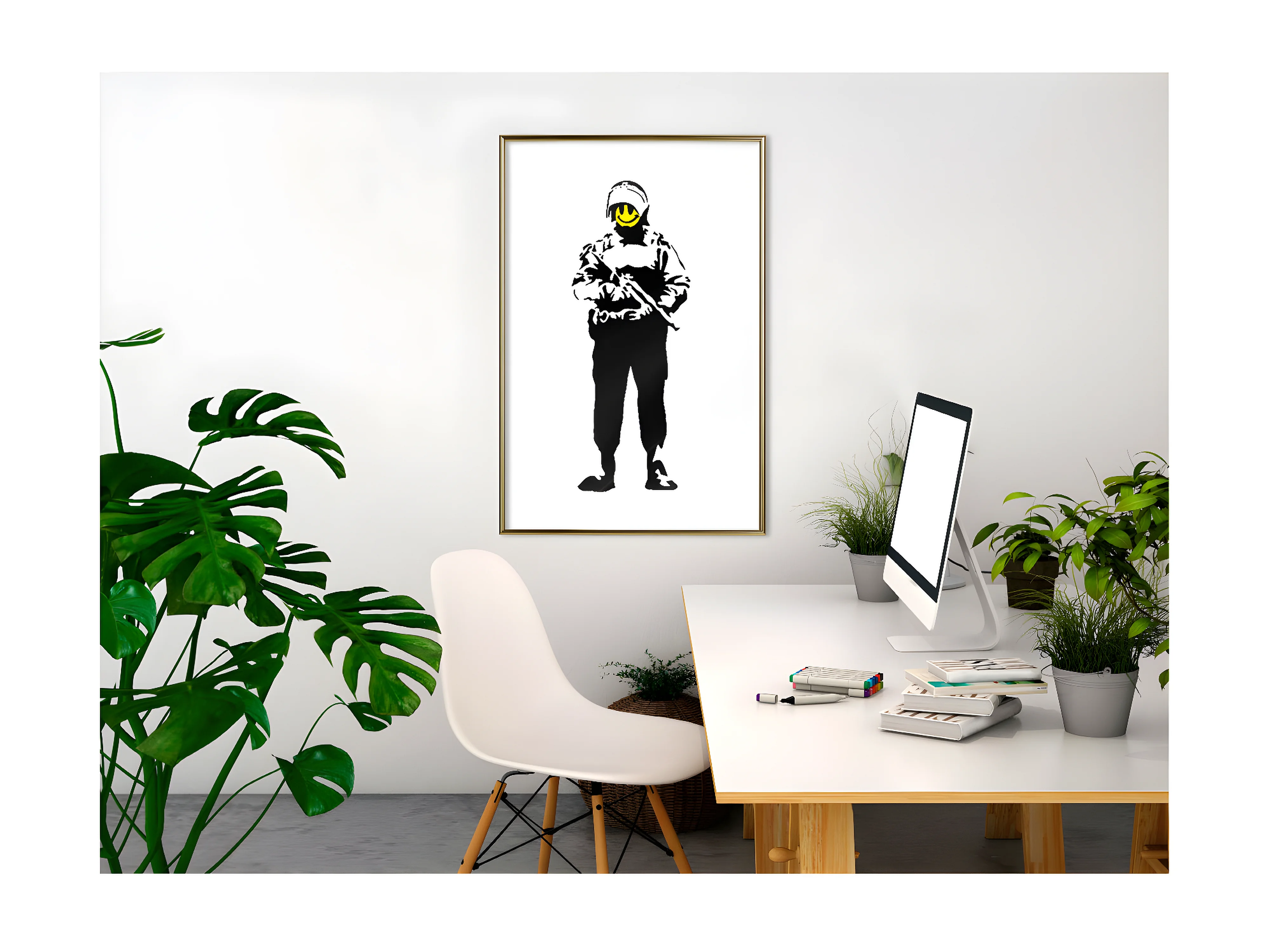 Affiche Murale Encadrée "Banksy Smiling Copper" 40 x 60 cm Or