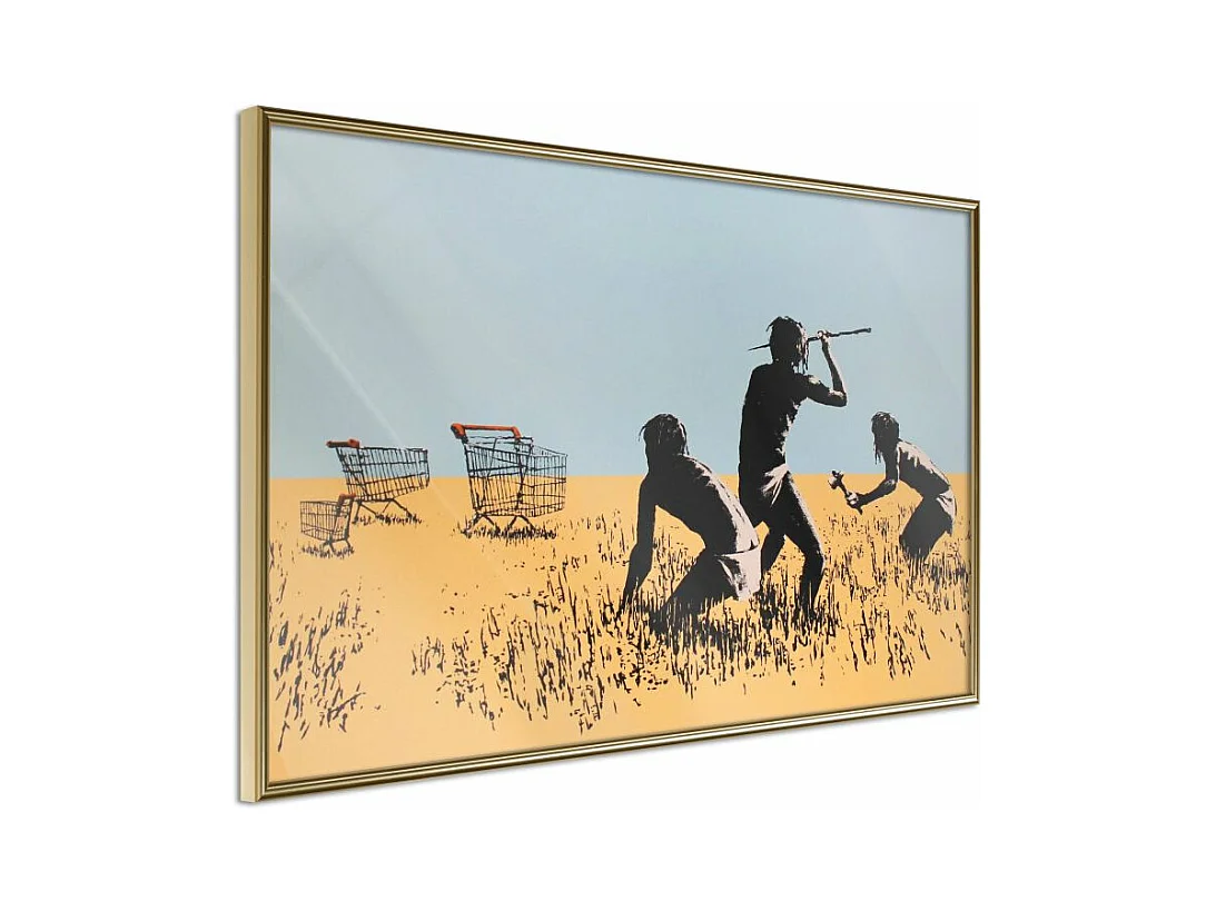 Affiche Murale Encadrée "Banksy Trolley Hunters" 45 x 30 cm Or