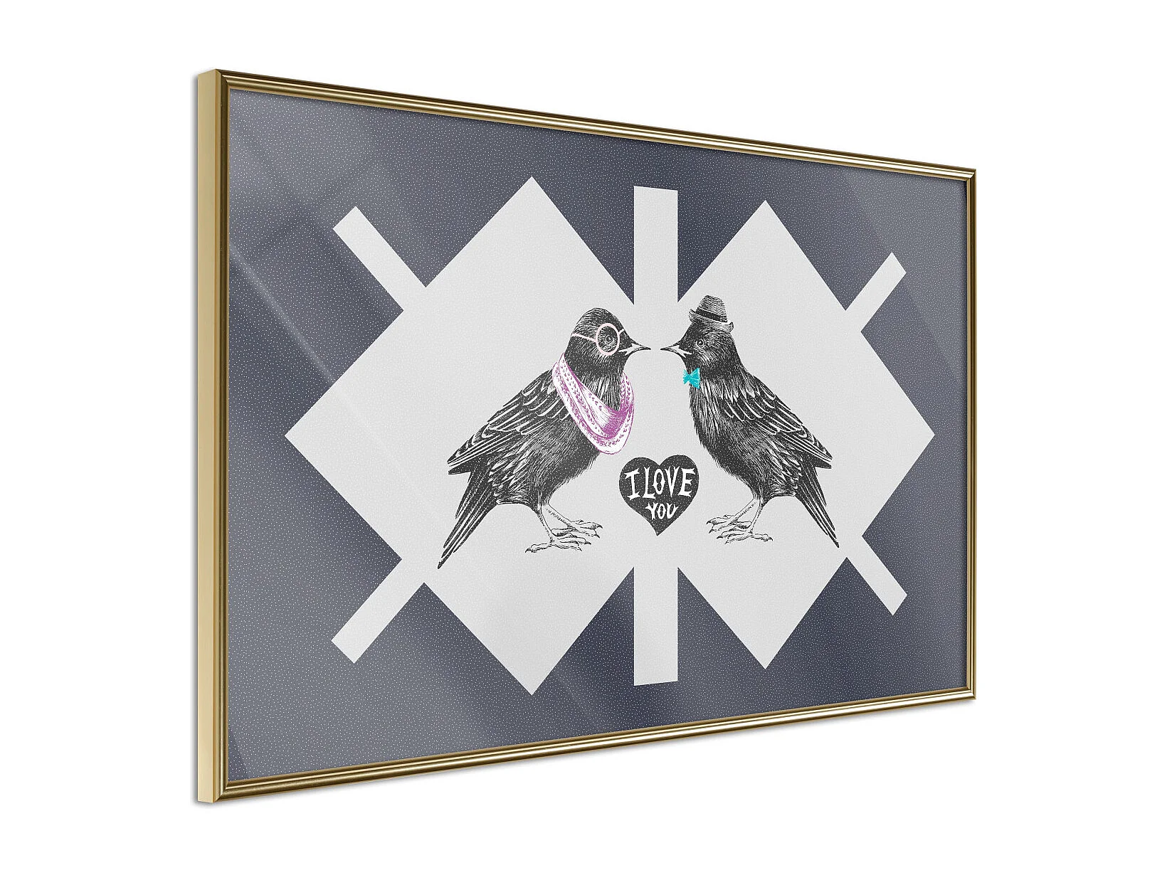 Affiche Murale Encadrée "Bird Love" 90 x 60 cm Or