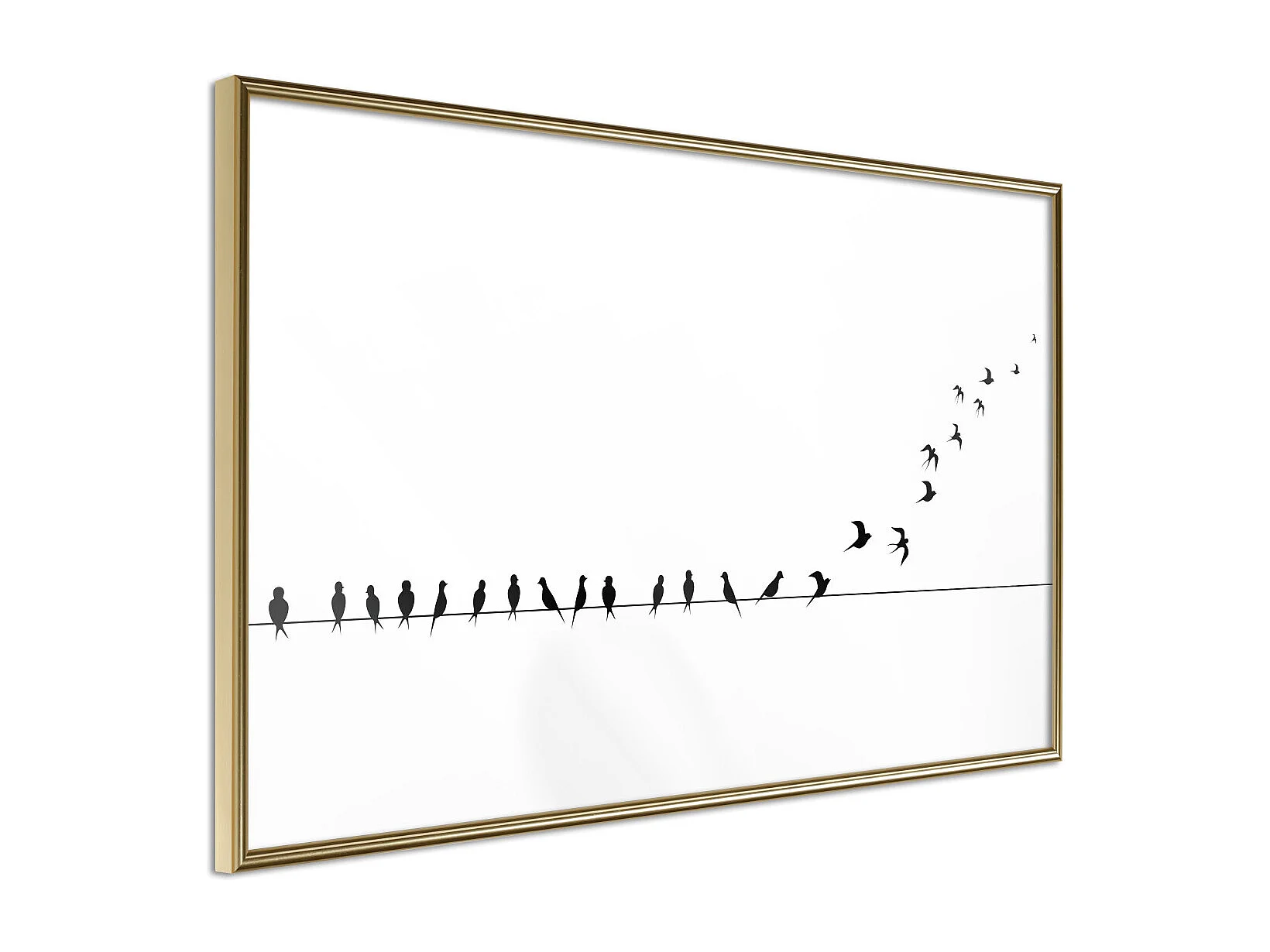 Affiche Murale Encadrée "Birds on a Wire" 30 x 20 cm Or