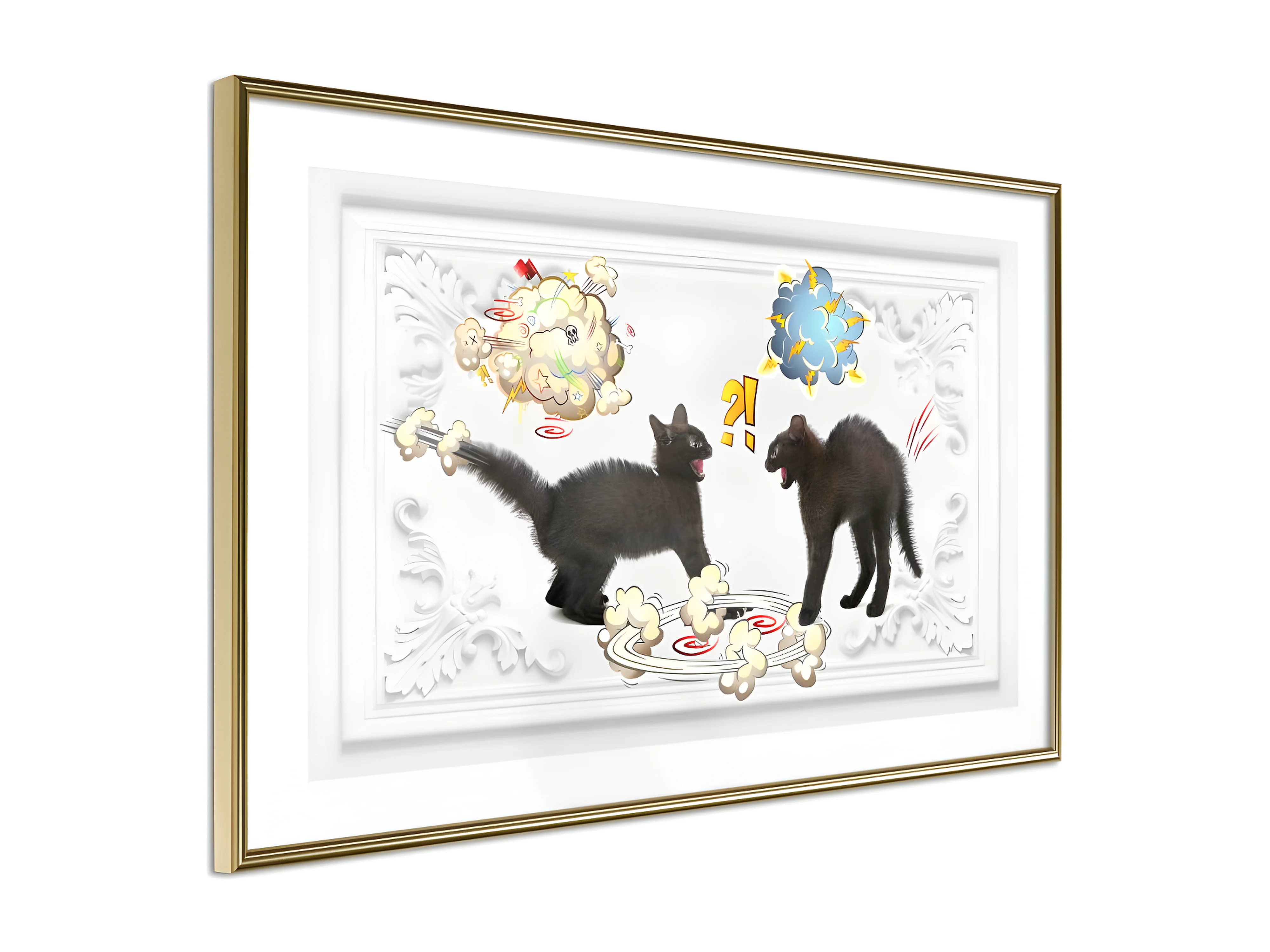 Affiche Murale Encadrée "Cat Fight" 30 x 20 cm Or
