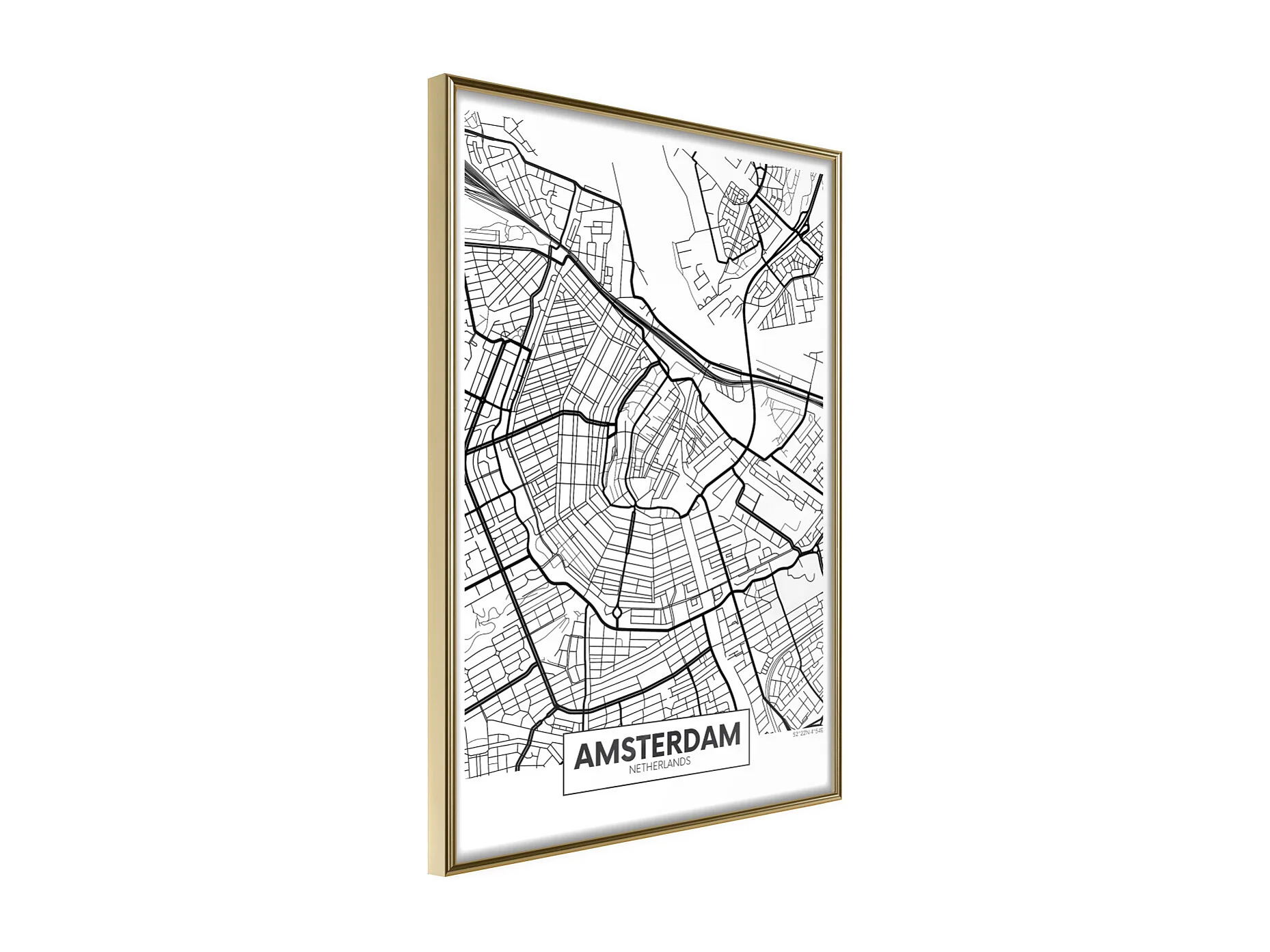 Affiche Murale Encadrée "City map Amsterdam" 40 x 60 cm Or