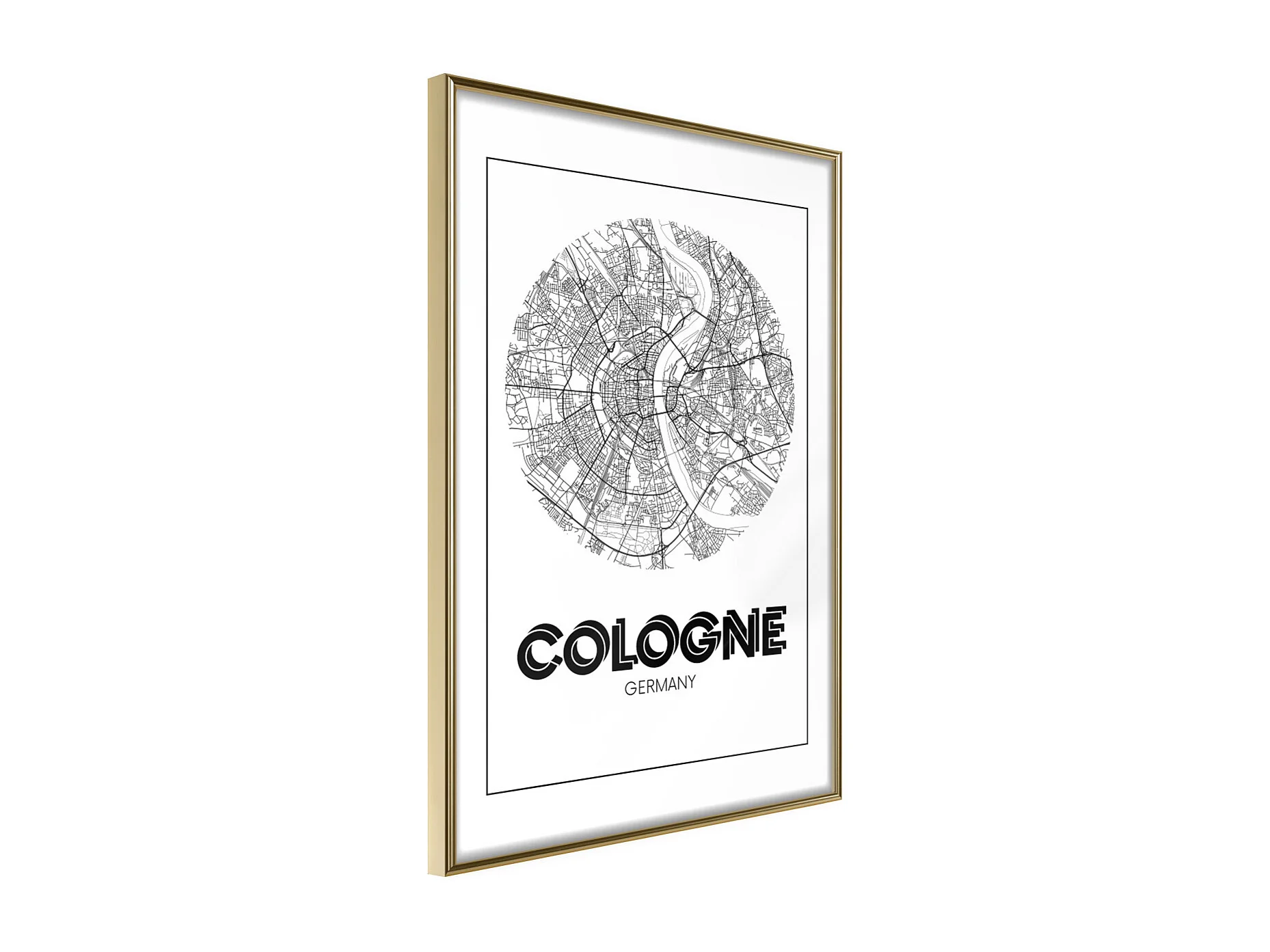 Affiche Murale Encadrée "City Map Cologne Round" 21 x 30 cm Or