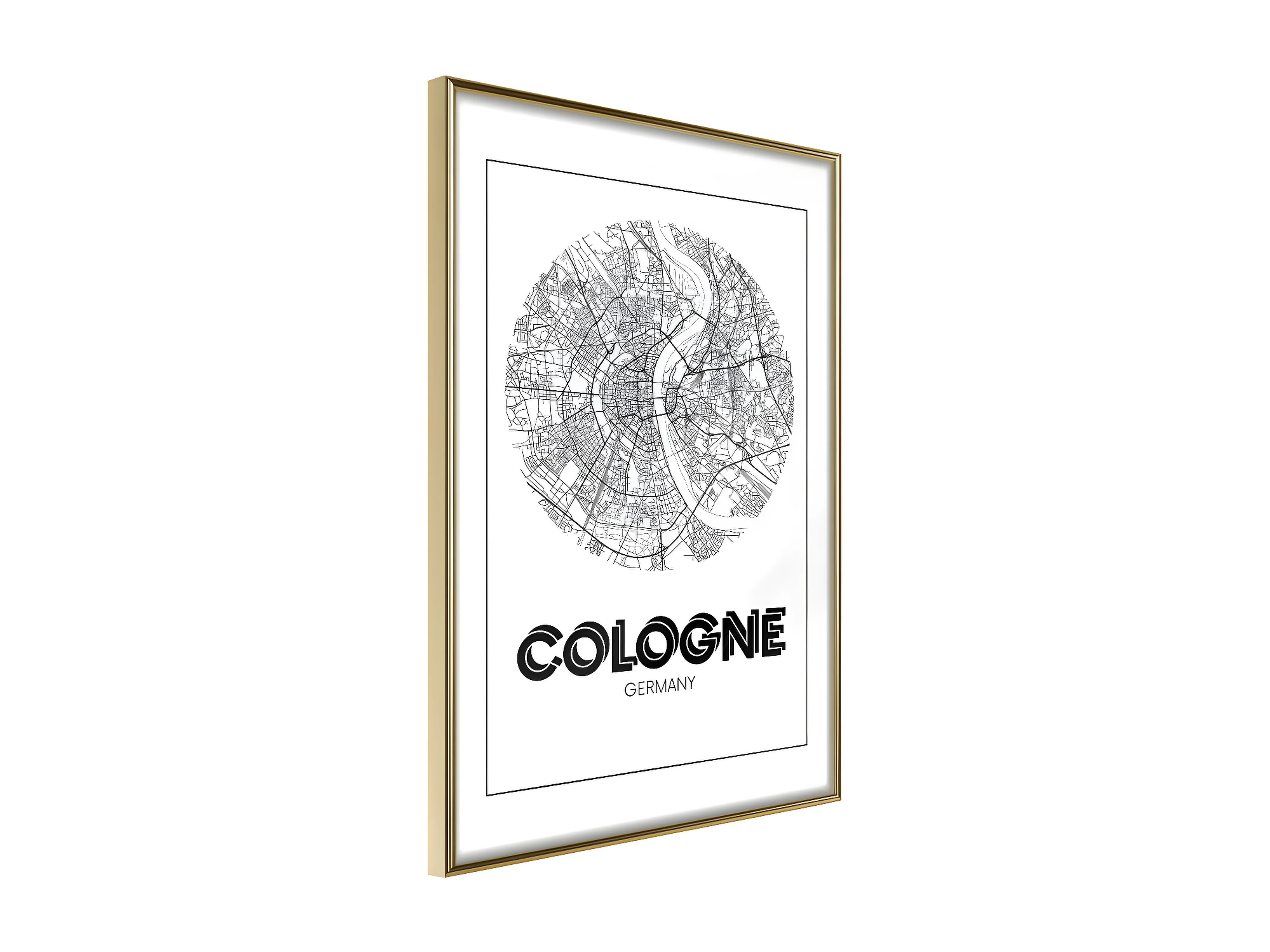 Affiche Murale Encadrée "City Map Cologne Round" 40 x 60 cm Or