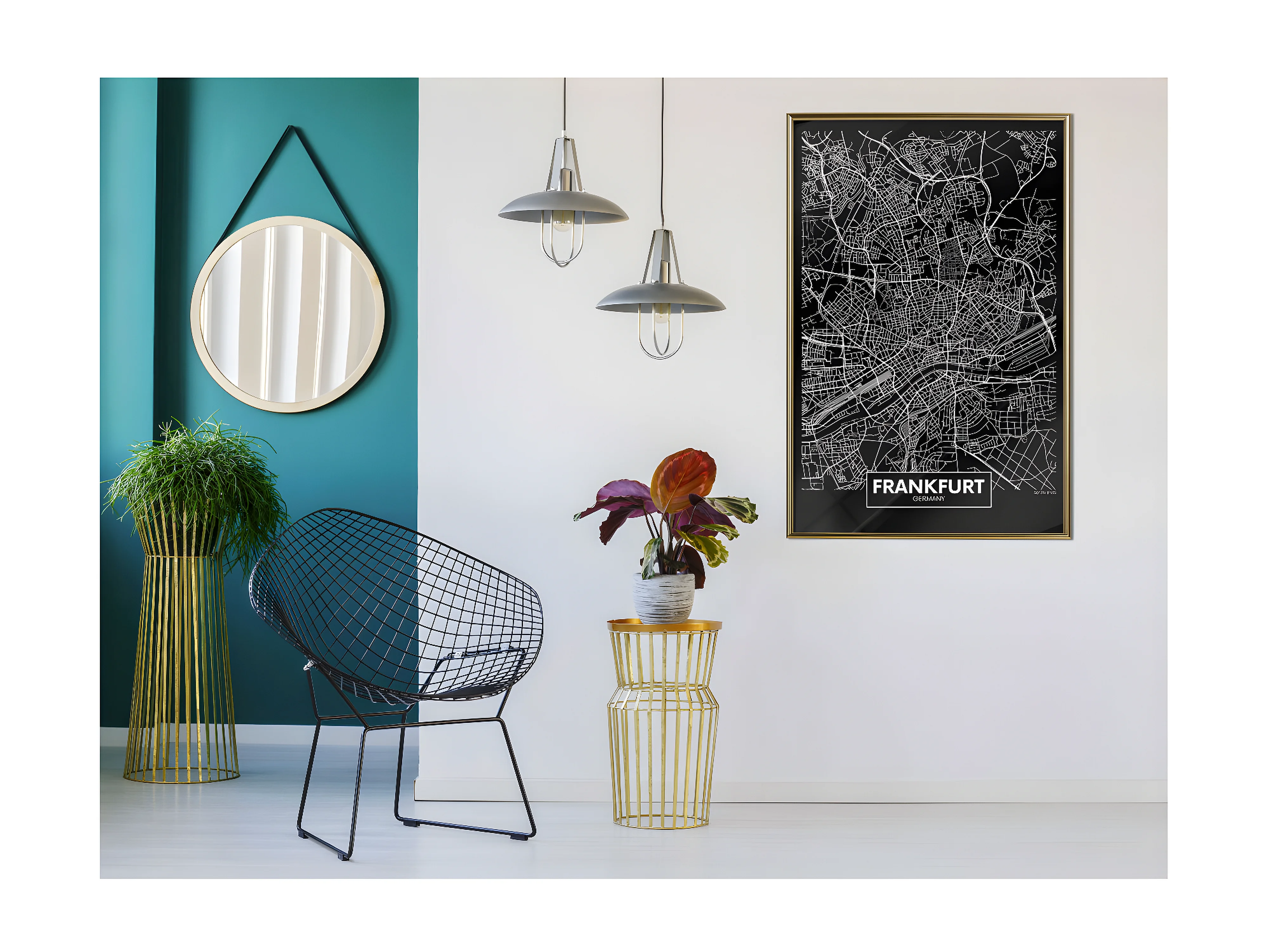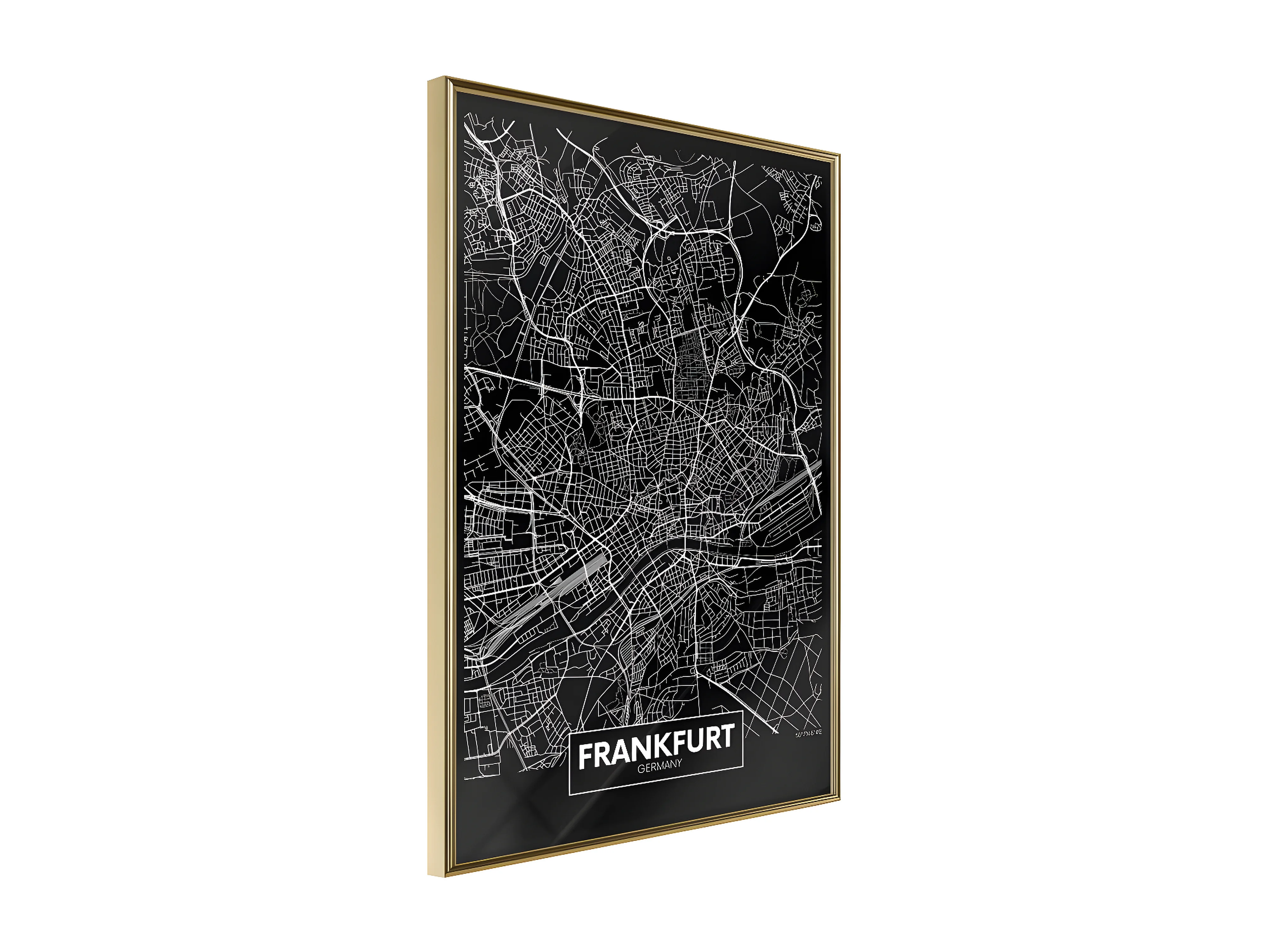 Affiche Murale Encadrée "City Map Frankfurt Dark" 40 x 60 cm Or